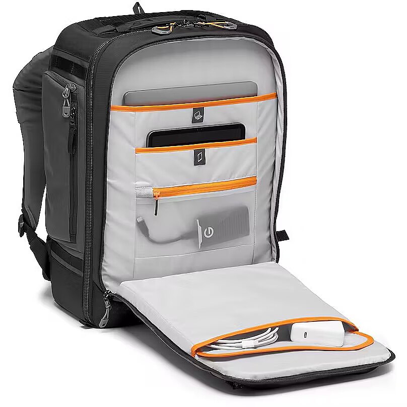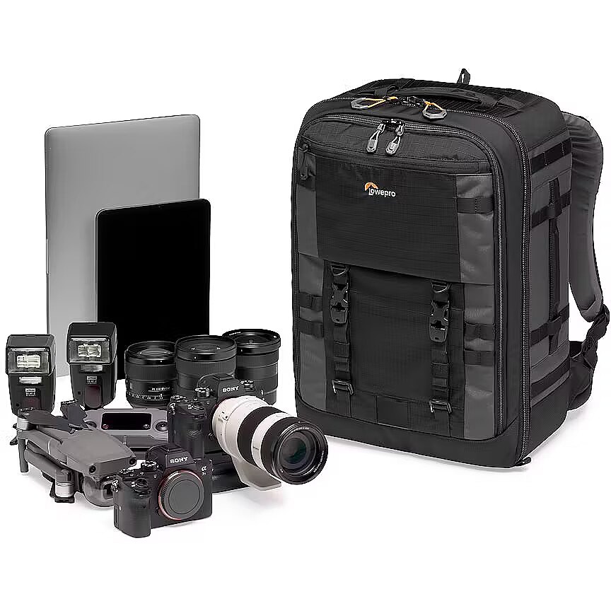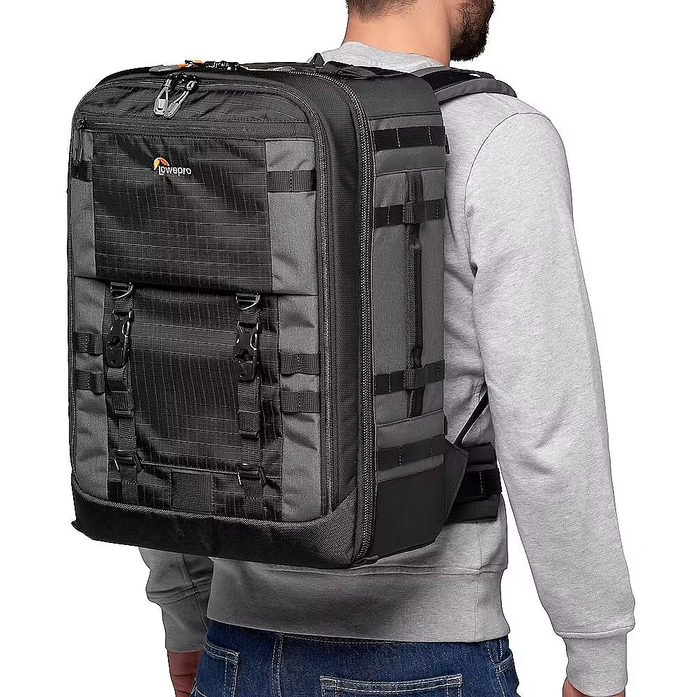 description_en - Pro photographer's backpack made of reycled fabrics, purpose-built to organize and protect the maximum amount of gear in a carry-on design. Made of 75% recycled fabrics Fits 2 Pro Mirrorless or DSLR, one with 300mm, 5-6 extra lenses MaxFit divider system for maximum capacity & snug protective fit Space for 15" laptop, 10" tablet Carry-on ready: meets standard carry-on requirements There are times when you have to be ready for the long haul. While managing a tight schedule, transporting your camera and video equipment alongside multiple editing devices can become cumbersome. You need carry-on compatibility for air travel and all-day comfort for carrying heavy loads to remote shoots. Lowepro’s widely popular Pro Trekker backpack does this job with ease. Designed with thoughtful organization and modern outdoor ergonomics in mind. It also includes an AW cover for added protection from the elements. The Pro Trekker BP 450 AW II professional camera backpack is part of Lowepro's efforts towards sustainability through the Green Line project. It has been updated to include 75% recycled fabrics (consisting of webbing, bindings, zipper tape, cords, and meshes) to reduce its negative impact on the environment. This Green Line score is measured following the GRI 301-2 standard, as a percentage of the recycled yarn used, compared to the total weight of yarn.