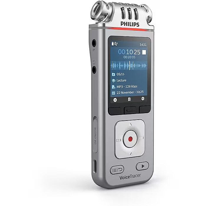 LongDesc - Exceptional recording, shared instantlywith automatic speech-to-textCapture lectures and distant speakers in outstanding sound quality thanks to the three specialized high-fidelity microphones. Record and control your recorder remotely using your smartphone app for even greater flexibility. Easily share your files with the world via the app. Combined with Sembly’s AI Speech-to-Text Cloud Software, you can even turn your recordings into text quickly and accurately. Simply upload your files to Sembly when you are back at your computer and let it automatically convert your recordings to text for you.Three high-fidelity microphones for best-in-class audio recordingSeveral key components are needed to record sound as naturally as possible in studio-like audio quality: high signal-to-noise ratio, highly dynamic microphones to capture soft tones as well as loud drums, a high-quality microphone suspension to avoid pickup of grip noise, a strong left and right channel separation for human ear live-like effect.Stereo MP3 and PCM recording for clear playback and easy file sharingCapture your recordings in stereo MP3 or PCM format. The popular MP3 file format allows you to play back your files virtually anywhere and simply share them with others. The PCM (WAV) format allows stereo recording of lossless, uncompressed sound in CD-like audio quality.8 GB internal memory for up to 88 days of recordingCapture and store up to 88 days of continuous recording thanks to the 8 GB of internal memory. A microSD memory card slot for up to 32 GB of additional memory guarantees virtually unlimited recording capacity.Rechargeable Li-ion polymer battery for extra-long recordingThe high-capacity Li-ion polymer battery can be easily charged through a standard USB C jack. This guarantees extended battery life for extra-long recording up to 36 hours, ensuring that your recorder will always be ready to work when you are.Free smartphone app for remote audio controlControl your audio recorder using your smartphone, even from a distance. The Philips VoiceTracer app makes recording events such as lectures much easier and more convenient. You can place your recorder in the front of the room near the speaker, take a seat at the back, and still control recording comfortably and without interrupting the lecture. The Philips VoiceTracer app can be downloaded for free from the Apple App Store or Google Play Store.Large color display for clear recording status informationThe large color display offers sharp images, making it easier to see and read everything at first glance. The clear user interface supports seven languages and is optimized for easy, intuitive operation.Audio scences for automatic perfect audio settings in any situationThe Philips VoiceTracer comes with preset scenes which automatically adjust the recorder’s audio settings depending on what you want to record, whether it is notes, audio for speech recognition, interviews, lectures, music or meetings.Smart recording and playback functions for best recording resultsSmart recording functions make it even easier to achieve stunning audio results. The pre-recording and timer functions make sure you don’t miss a single bit. Voice-activated recording is a convenient feature for hands-free recording which pauses recording when you stop speaking and resumes automatically when you begin speaking again. Recordings can be edited by overwriting a part or adding a new recording at the end. Long recordings can be split automatically or manually into separate files for easier editing or sharing. Smart playback functions, such as bookmarks and filters, also make it easier and quicker to find the recording you are looking for.Automatically convert your recordings to text, up to three times faster than typingPut an end to tedious typing and create text documents directly from recorded audio files. Using the Sembly Speech-to-Text Software is at least three times quicker than typing up the document yourself. Simply record your notes, interviews or meetings, upload them to Sembly, and receive a written document almost instantly.Automatic meeting minutes with multi-speaker transcription for easy following upIf you want to record meetings, Sembly Speech-to-Text Software creates automatic meeting minutes, so you can focus on your conversation and not get distracted by having to take notes. Thanks to multi-speaker identification you can clearly identify who said what.Easily share your voice or meeting recordings with colleagues, family or classmatesSembly allows to save transcriptions on your computer in PDF or markdown format. You can easily share your voice recordings and transcripts with colleagues, family or classmates by simply sending them a link. For increased privacy, you can add a password to your link.