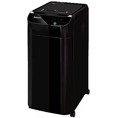 LongDesc - The Fellowes AutoMax 350C auto feed paper shredder brings you truly walk-away, automatic shredding for the office environment. Designed for everyday secure shredding in the office, the 350C can shred an A4 sheet into 4 x 38 mm cross-cut particles and shreds continuously for 45 minutes before needing 30-minutes to cool down. With the ability to shred 350 sheets (70gsm) at a time automatically (or 12 manual) the 350C is the most productive way to protect your privacy. The large 68-Litre pull out bin is ideal for frequent shredding and can hold up to 350 shredded sheets. This shredders powerful cross-cut cutters will not only shred your documents, but can shred staples, paper clips, credit cards and CD/DVD's too! The 350C is built for quieter shredder performance with SilentShred technology, which minimises noise disruption in your workspace. It also offers frustration free shredding, thanks to its Auto Reverse feature that stops the shredder and reverses the paper to prevent jams from occurring. It's Sleep Mode feature will cause the machine to switch to standby mode after 2 minutes of inactivity. Fellowes shredders are built to last with solid steel cutters, a powerful motor and parts that are engineered to outperform our competitors.