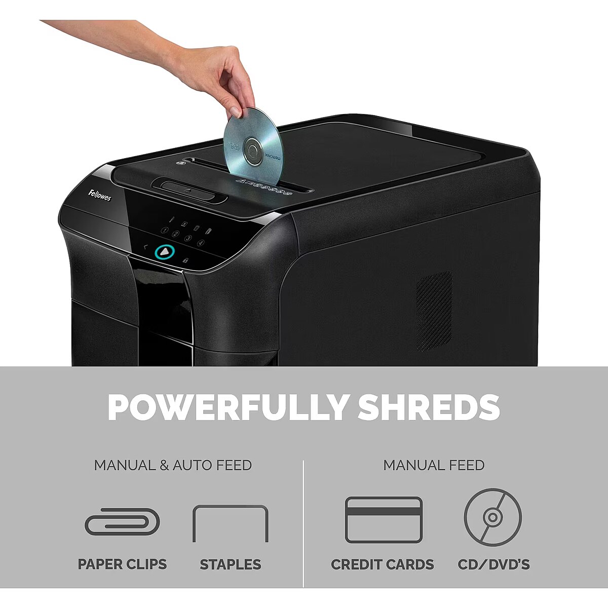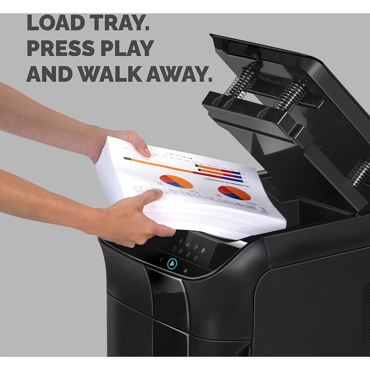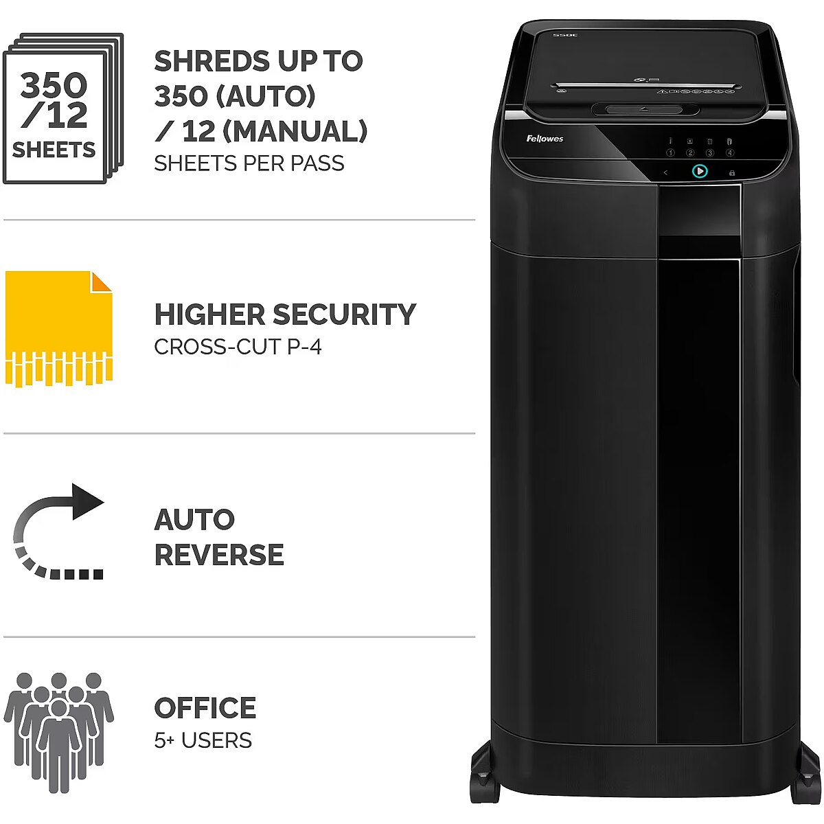 Title - Fellowes Paper Shredder 350 Sheet Auto Feed Cross Cut Shredder AutoMax 350C Shredder with 68 Litre Bin High Security P4