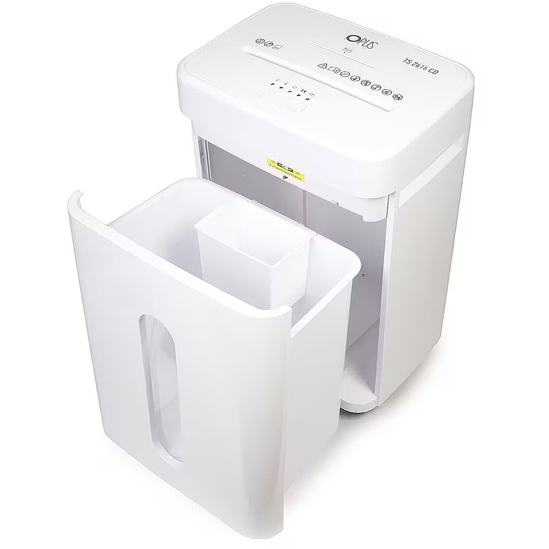 Dane techniczne: Inne cechy - Szczelina podawcza dla płyt kompaktowych/kart plastikowych: 122 mm | automatyczne zatrzymanie w przypadku przepełnienia kosza na ścinki | fotokomórka | skrętne kółka | osobny pojemnik na płyty CD/DVD/Blue-Ray | autoczyszczenie - polega on na samoczynnym w