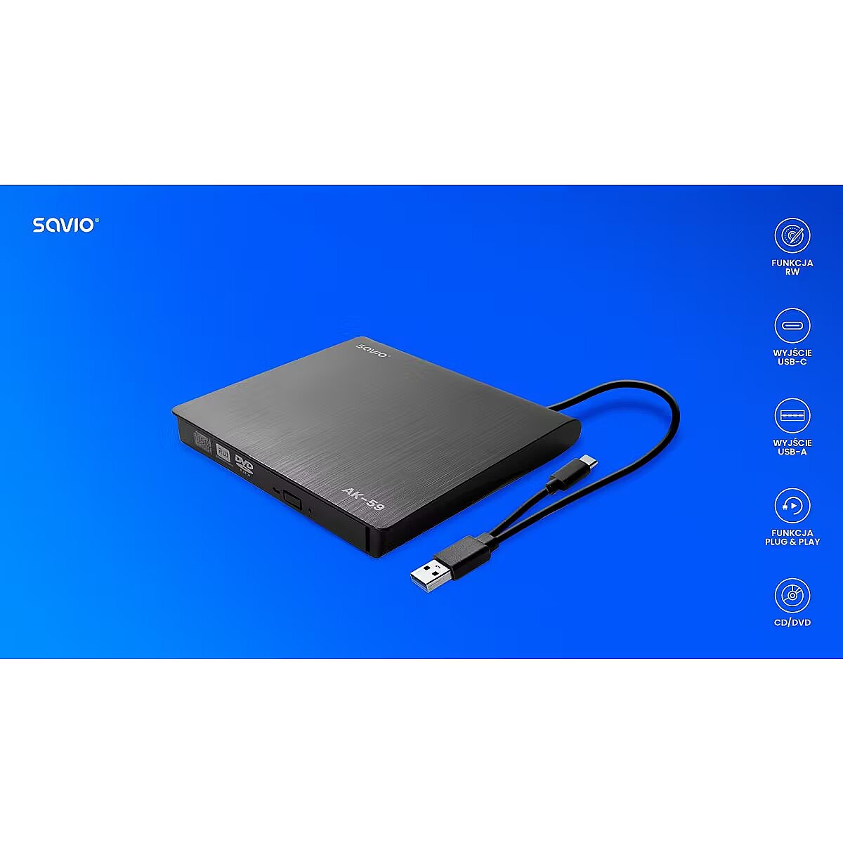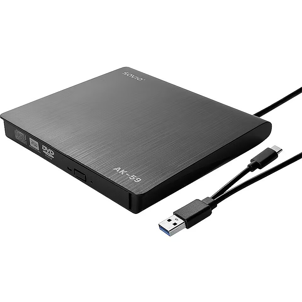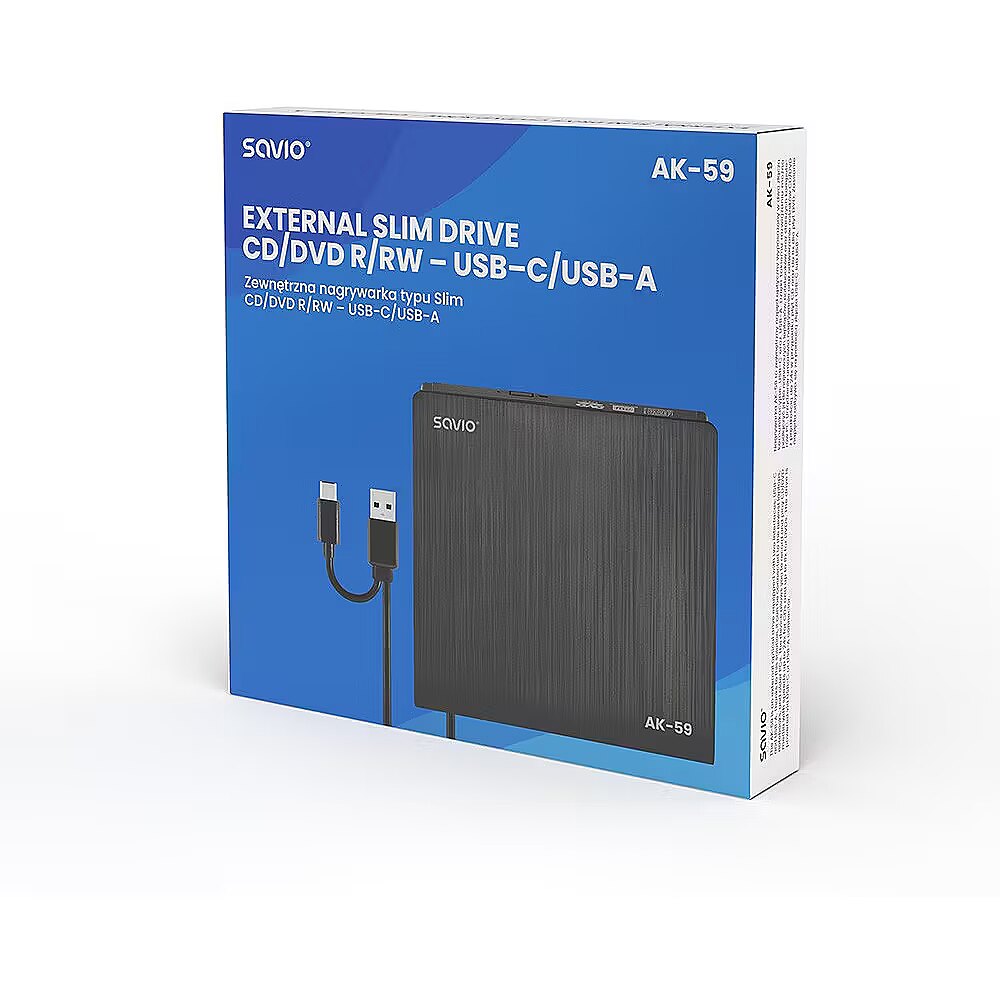 productName - SAVIO AK-59 External slim CD/DVD Recorder R/RW - USB-C/USB-A, black