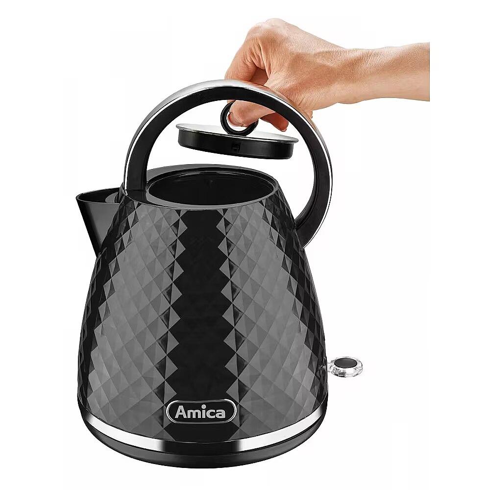 Description - Kettle KF 3030 1.7l Strix/Otter controller There is no durable electric kettle without an appropriate controller, i.e. without a system responsible for transmitting energy between the kettle base and the device itself. That's why Amica uses the best Strix or Otter controllers on the market! Thanks to innovative solutions, the life of the equipment is longer and it saves money for you. Now you can enjoy your kettle longer! 360° swivel base Putting the kettle back in its original position is sometimes difficult, especially when you do it with your left hand. That's why the base of the Amica kettle is rotatable! Now reaching for the device or putting it down will always be comfortable, regardless of whether you are right- or left-handed. Use it conveniently! Removable anti-scale filter Hard water in the tap? Limescale deposits may not only affect your health, but also look unsightly. That's why we equipped Amica kettles with a special, removable filter! It protects the water you drink against the penetration of calcium precipitated during cooking. It improves its properties and keeps the kettle in top condition for a long time. It's hygiene and better taste of water in one! Anti-slip base Something often spills in the kitchen and the countertop becomes slippery. That's why the bases of Amica kettles are equipped with an anti-slip base! This design significantly increases the stability of the device and prevents it from slipping on even wet surfaces. The kettle is placed where it is supposed to be. And you feel safe because you won't accidentally get burned by hot water. Storage compartment for the mains cable A tangle of cables on the kitchen counter is neither aesthetic nor safe. That's why the base of Amica kettles has been designed in such a way that it allows you to hide the unnecessary section of the cord. This means not only more space on the kitchen counter and comfort of work, but also the certainty that no one will accidentally hook or pull the kettle. It may seem like a small thing, but every aspect of safety counts in the kitchen. Quick&Clean Dirt settling in the kettle has a significant impact on the quality and taste of water. Therefore, cleaning your device should be easy! That's why the diameter of the lid of Amica kettles is large enough to be able to easily put your hand inside and quickly clean the equipment from the inside. It's hygiene, but also saves time, which you can use however you want! Flat heater It makes it easier to keep the kettle clean. The advanced design of the heater also means lower power consumption. Overheating protection If the temperature of the device rises dangerously, the equipment will automatically turn off. After cooling, it will be ready for use again.