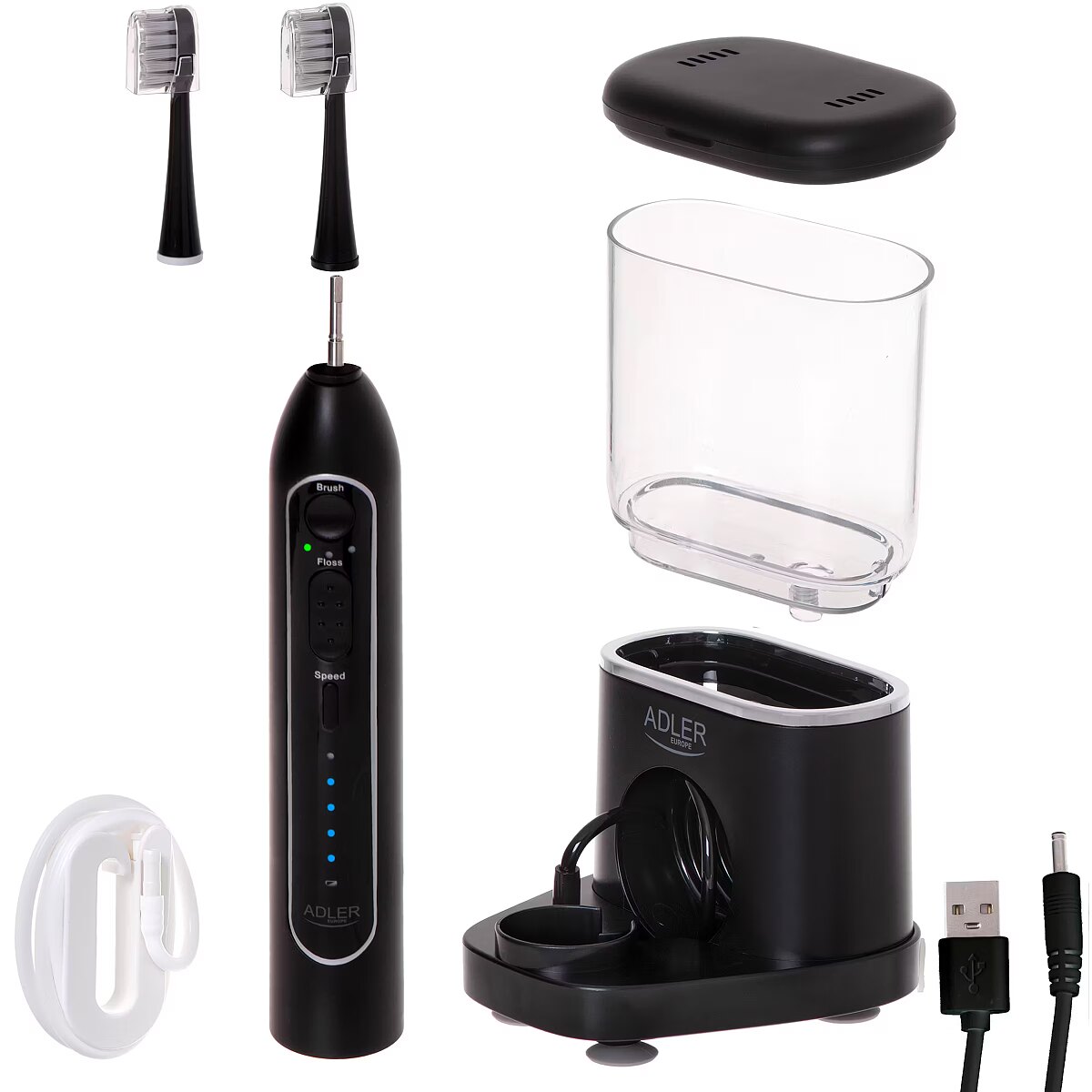 Name - Adler | 2-in-1 Water Flossing Sonic Brush | AD 2180b | Rechargeable | For adults | Number of brush heads included 2 | Number of teeth brushing modes 1 | Black