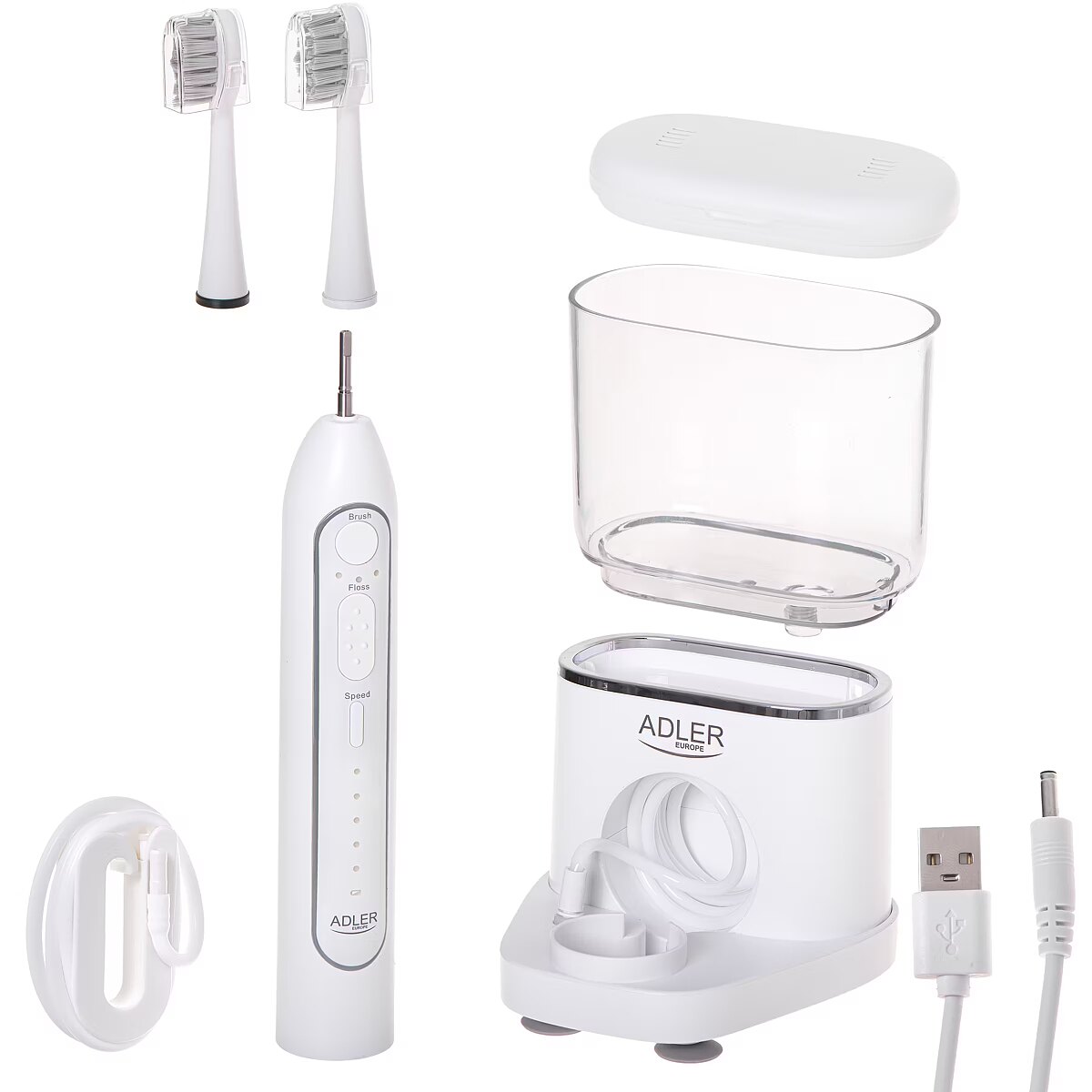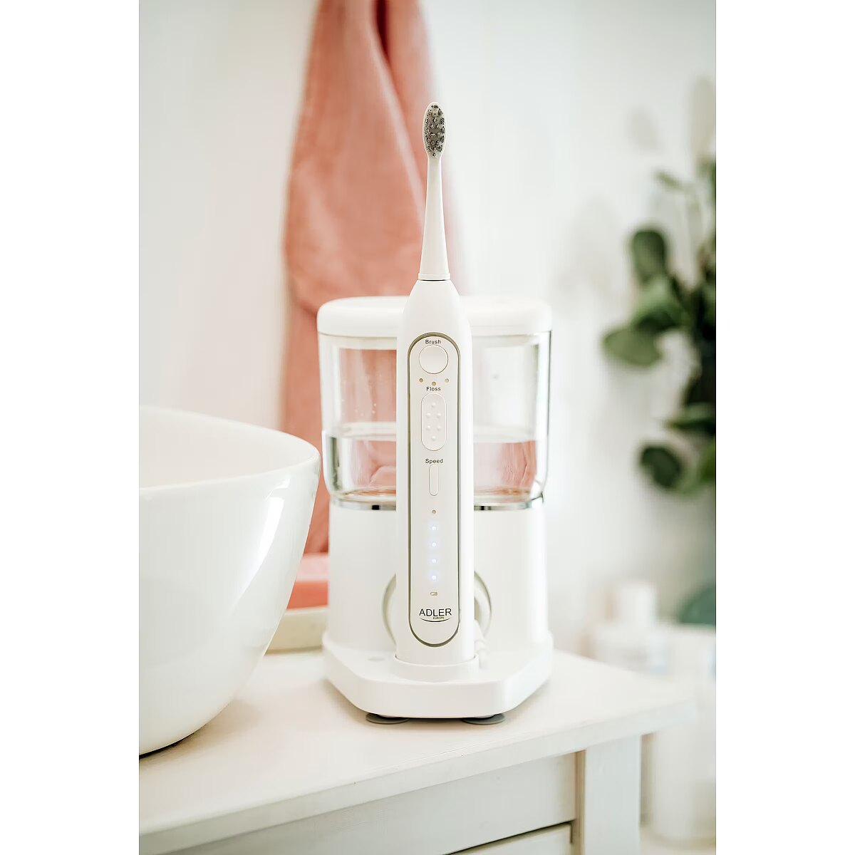 Name - Adler | 2-in-1 Water Flossing Sonic Brush | AD 2180w | Rechargeable | For adults | Number of brush heads included 2 | Number of teeth brushing modes 1 | White