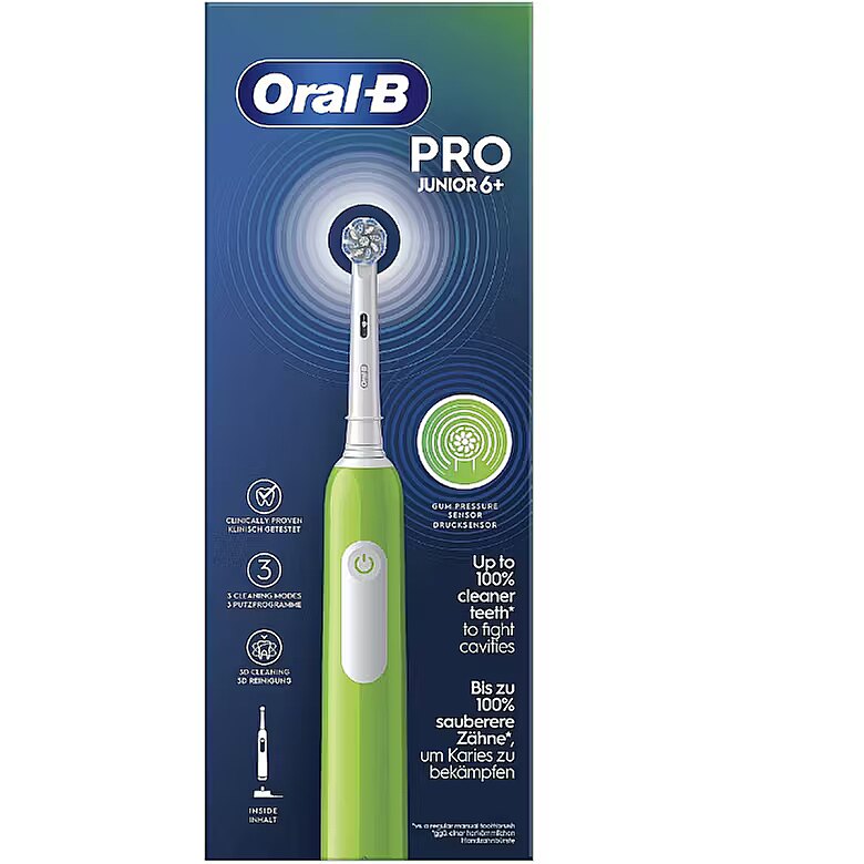 Oral-B Electric Toothbrush | Pro Junior 6+ | Rechargeable | For children | Number of brush heads included 1 | Number of teeth brushing modes 3 | Green