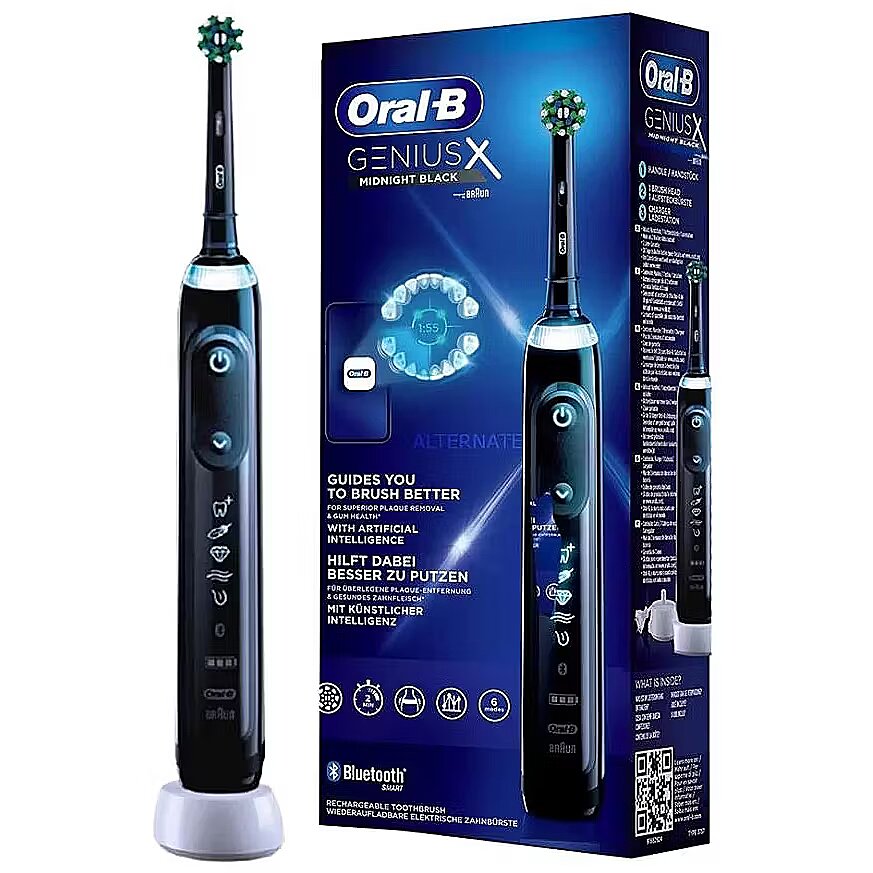 This product Oral-B | Electric Toothbrush | Genius X | Rechargeable | For adults | Number of brush heads included 1 | Number of teeth brushing modes 6 | Midnight Black