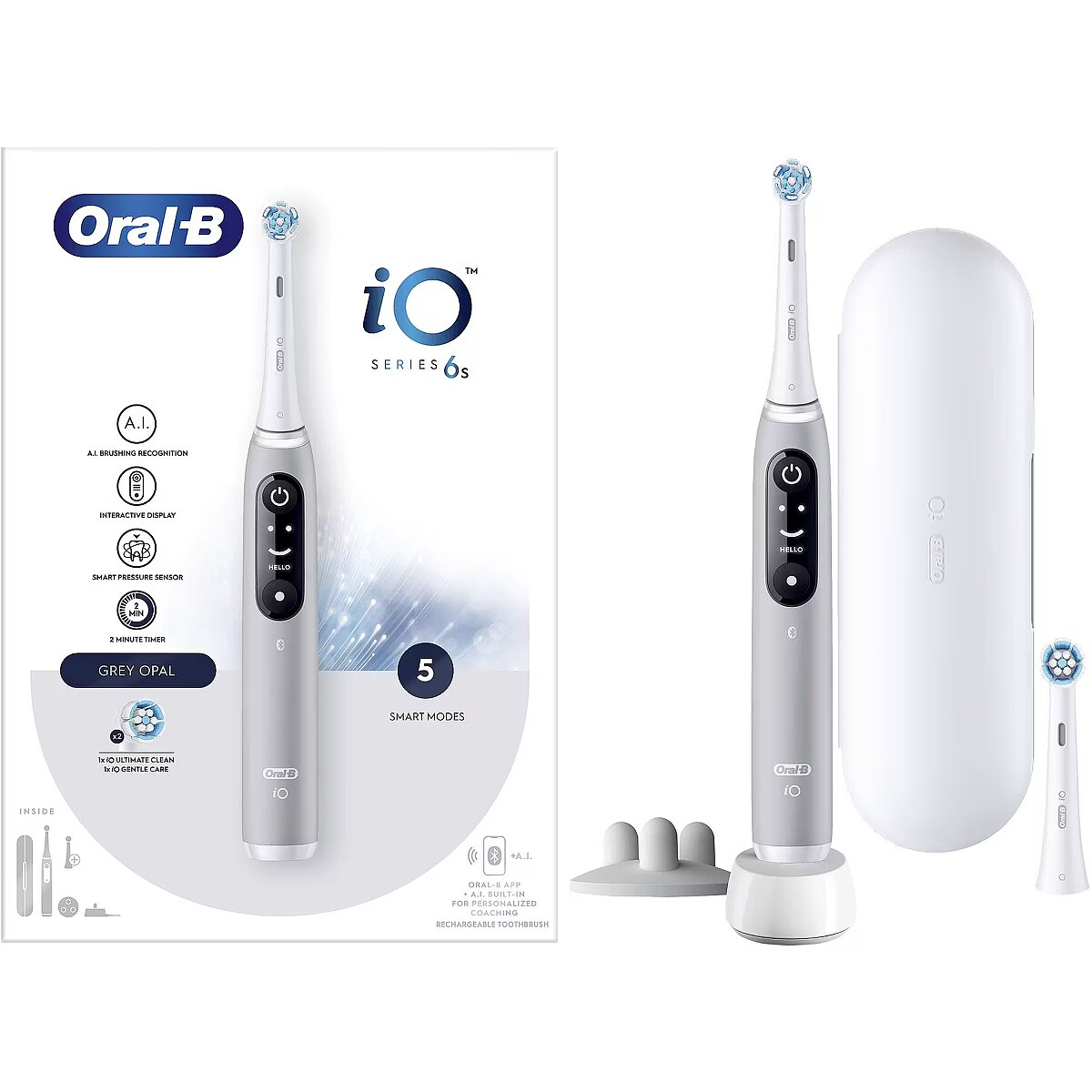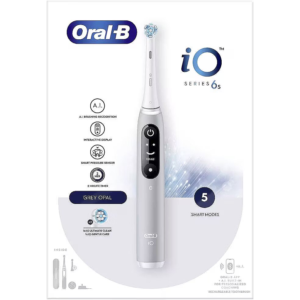 Name - Oral-B Electric Toothbrush | iO6s | Rechargeable | For adults | Number of brush heads included 2 | Number of teeth brushing modes 5 | Grey
