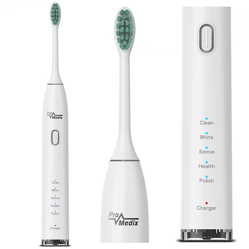 Description - PROMEDIX PR-740 Nowoczesna szczoteczka soniczna, w której zastosowano technologię wysokiej częstotliwości fal. Szczoteczka charakteryzuje się częstotliwością drgań do 31000/min. PR-740 zapewnia dokładniejsze mycie od zwykłych szczoteczek, drgania o dużej sile wyrzucają cząsteczki pasty które docierają w trudno dostępne miejsca. Soniczna szczoteczka jest bardzo łatwa w użyciu. Nadaje się dla dorosłych oraz dzieci. Jest też efektywna w usuwaniu bakterii, osadu oraz płytki nazębnej Szczoteczka Promedix PR-740 wyposażona została w 5 trybów pracy, dla zapewnienia najlepszej efektywności: - Clean - Tryb codziennego czyszczenia zębów i dziąseł. Moc fal o wysokiej częstotliwości, ten tryb zapewnia najsilniejsze czyszczenie (do 31000 wibracji/min) - White Tryb wybielający do usuwania nalotu, szczególnie po kawie, herbacie i papierosach. Wysoka częstotliwość i średnia siła. - Health Tryb dla wrażliwych zębów i dziąseł. W okresie rehabilitacji stomatologicznej bardzo pomocne są szybkie pulsacje o wysokiej i niskiej częstotliwości. - Polish Tryb rozjaśniania i polerowania zębów, dzięki najszybszym drganiom dokładnie usuwa uporczywe odbarwienia i kamień. - Massage Tryb czyszczenia z łagodnym masażem dziąseł. Do zestawu dołączony jest kabel do ładowania, dzięki któremu można naładować akumulator szczoteczki bezpośrednio z portu USB np. komputera, laptopa lub ładowarki telefonu.