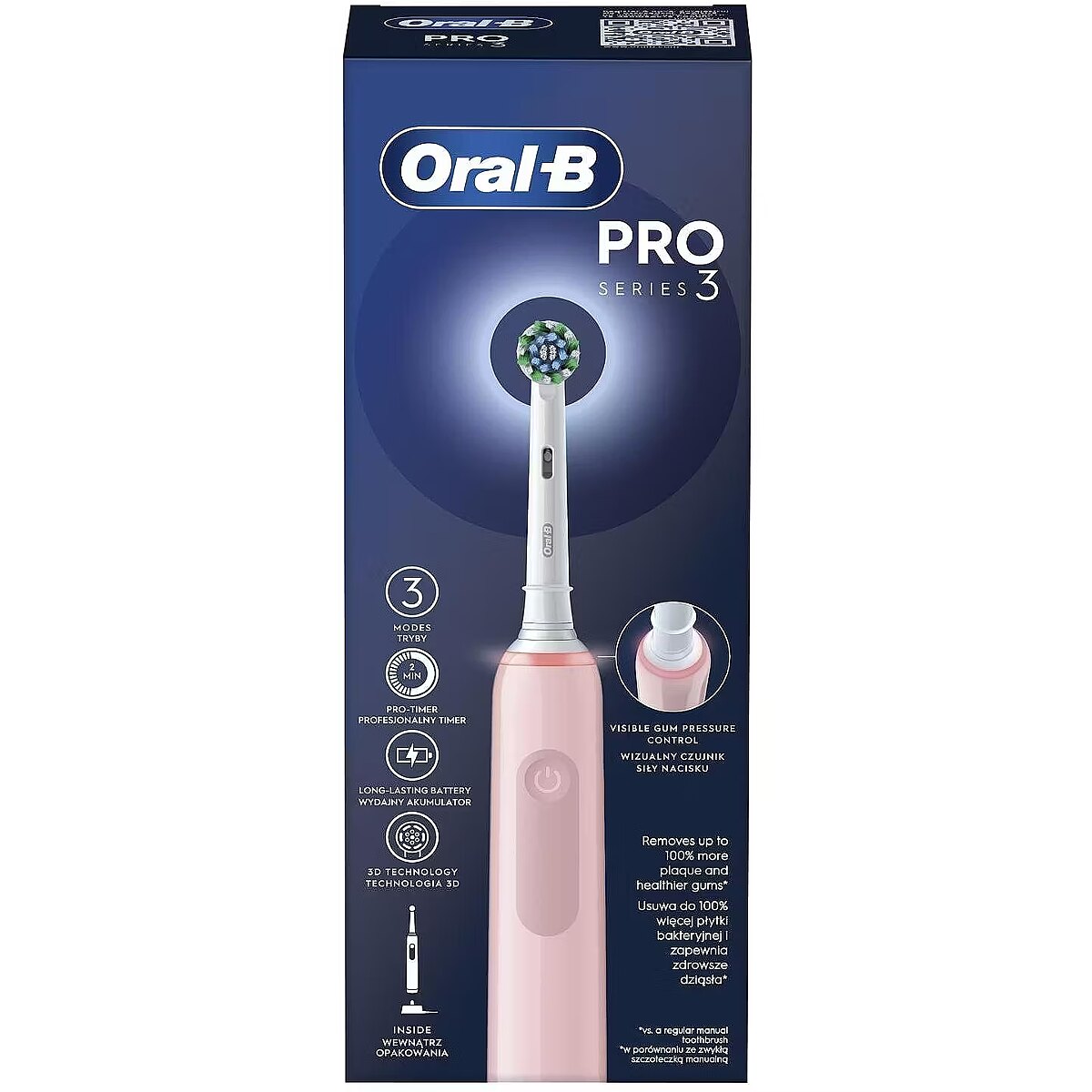 Name - Oral-B Electric Toothbrush | Pro3 Pink X-Clean | Rechargeable | For adults | Number of brush heads included 1 | Number of teeth brushing modes 3 | Pink