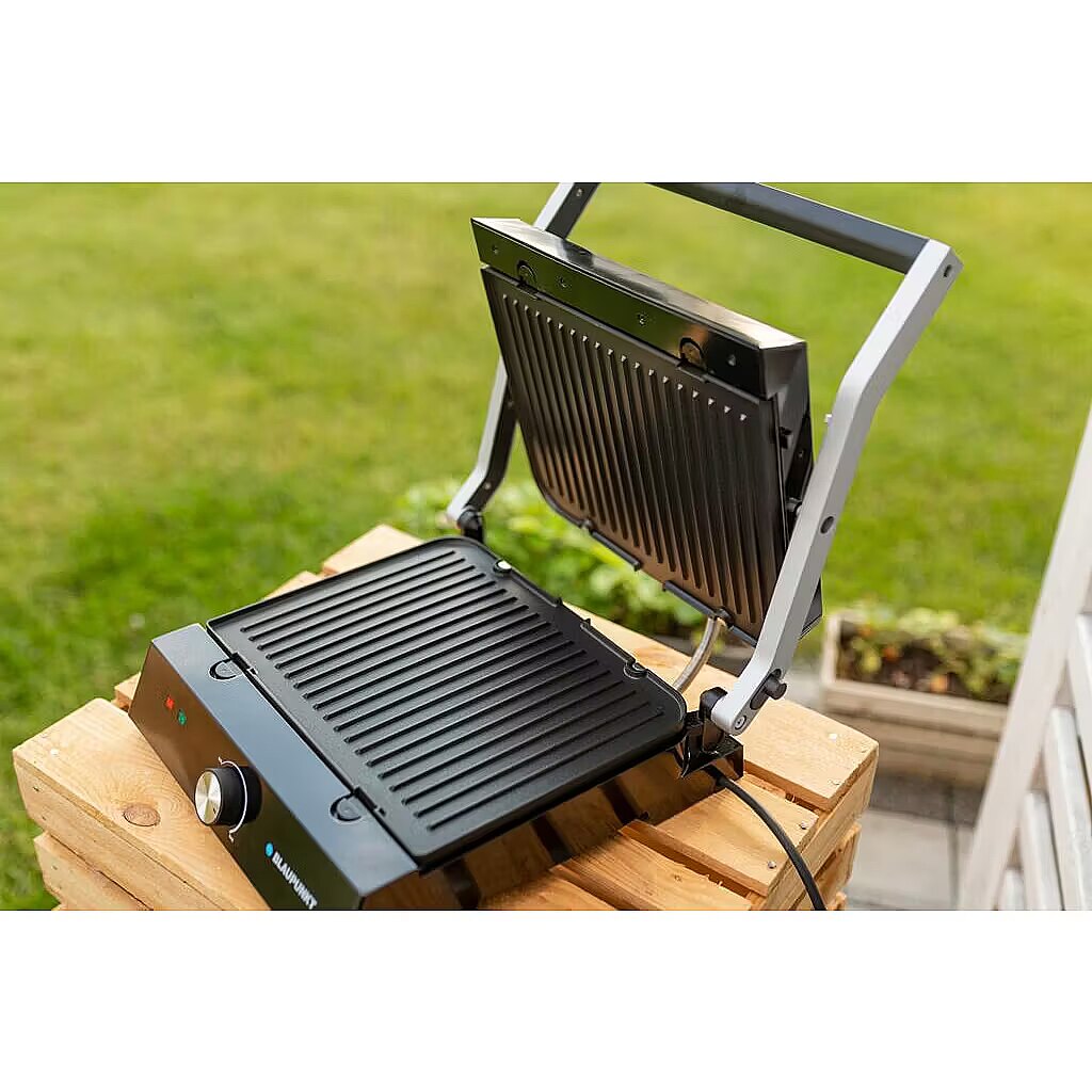 Functions - Can work as an open grill (lid opens 180°, with locking system)
