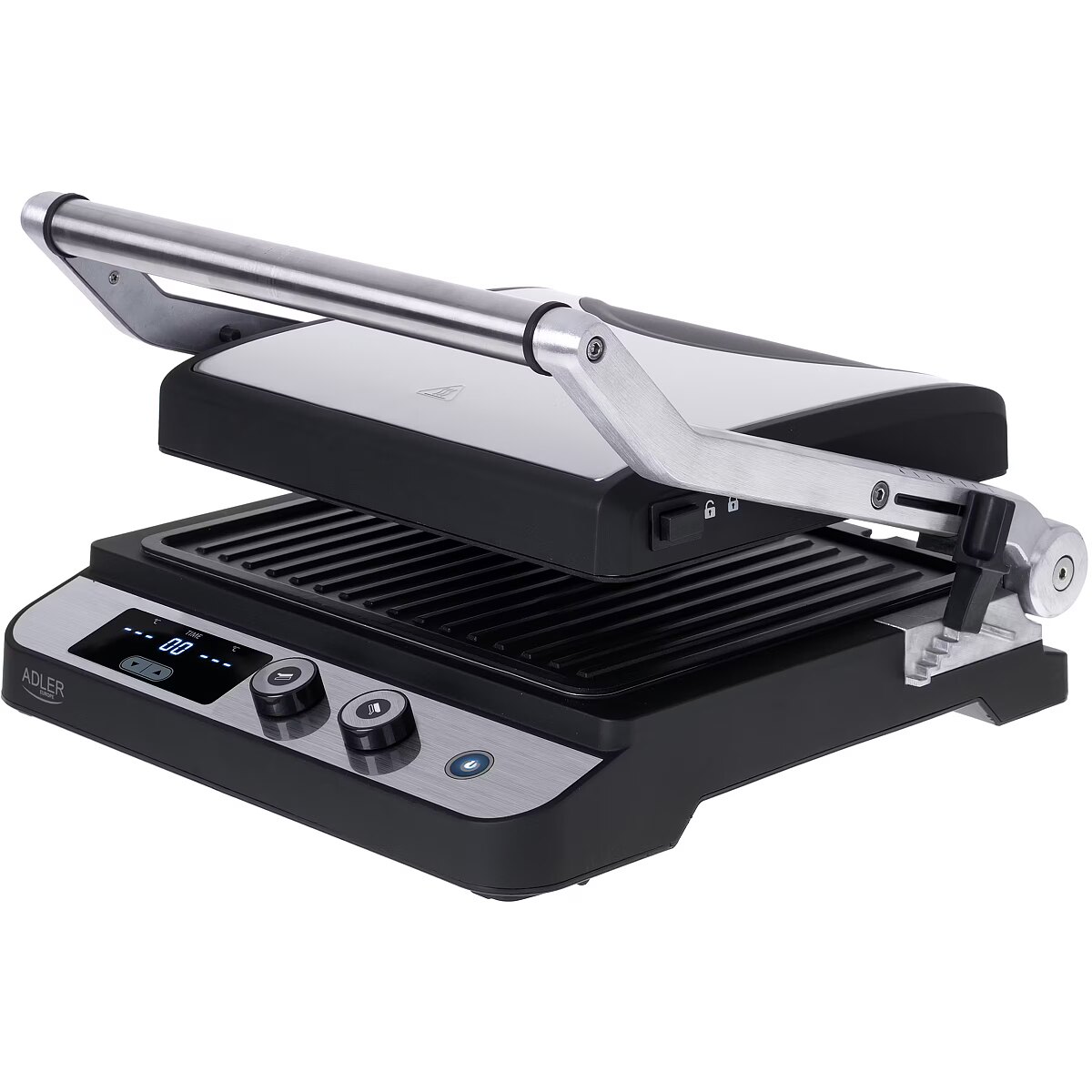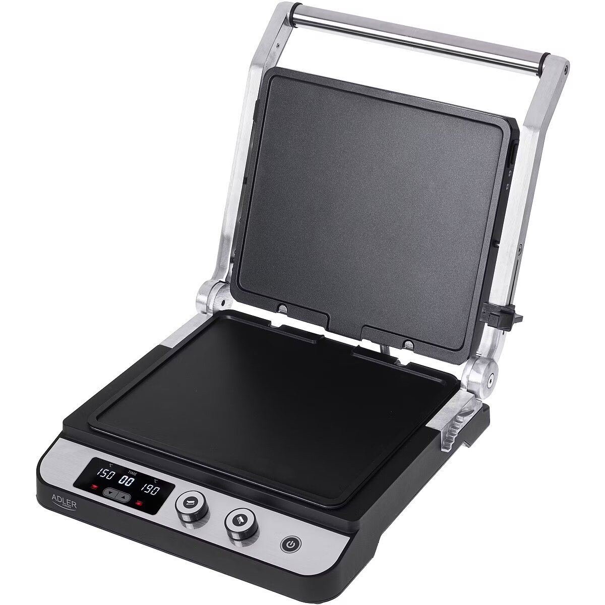 description_en - The Adler 3059 electric grill with an LED display with a maximum power of 3000W allows you to prepare a wide range of hot meals - from toasted burgers, through steaks, pork neck, chicken and other meats, to grilled vegetables and cheeses. The heating plates are protected with a Teflon coating, thanks to which the food does not stick, and subsequent washing takes only a moment. Additionally, the coating allows you to grill without adding fat, and the fat drainage hole makes the dishes healthier. The device has a convenient control panel with an LED display.