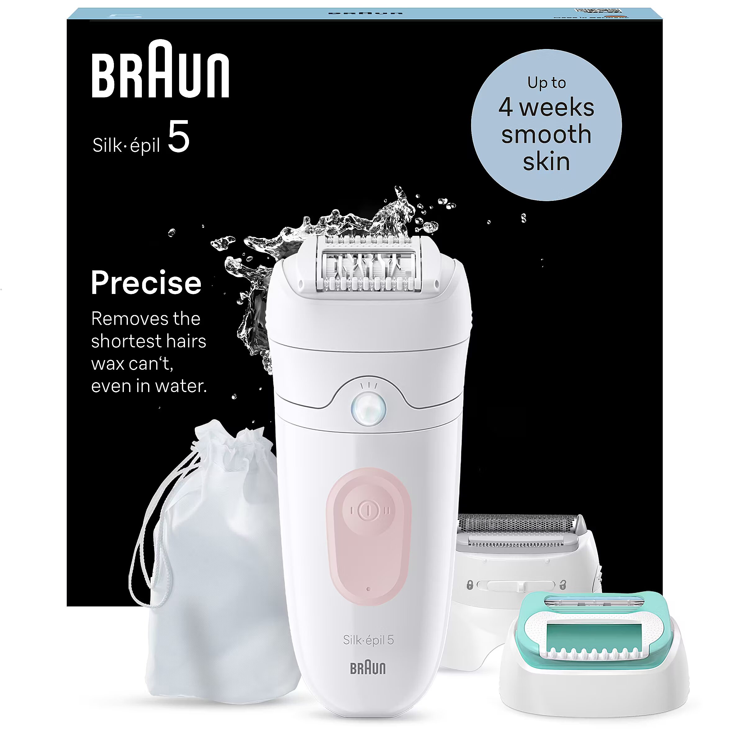 LongDesc - The Braun Silk·épil 5 epilator for women is perfect for beginners, providing up to 100% gentle hair removal in just one stroke. Extra gentle epilationThe Silk·épil 5 comes with a setting for gentle hair removal. With anti-slip grip you can epilate in the bath or shower, making it a virtually painless experience with frequent use of water - ideal for women who are new to epilation.Epilation in one strokeGet rid of hair faster and for longer. Micro-Grip technology features 28 wider, longer and deeper tweezers to increase the chances to catch hair in one stroke.Smooth movesUse with gel/shaving foam so the device glides smoothly over your skin. Epilating in warm water relaxes your skin and gives you an even gentler experience.