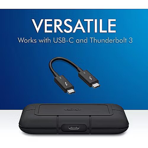 Description - LaCie Rugged SSD Pro features a Seagate FireCuda NVMe SSD for max Thunderbolt 3 speeds and extreme in-field durability so filmmakers and DITs can play back 6K, 8K, and super slo-mo source files anywhere — without transcoding. Delivers NVMe-boosted performance of up to 2800MB/s for file transfers and rendering Tackle any terrain with extreme IP67-rated dust and water resistance, three-meter drop tolerance, two-ton car crush resistance in a palm-sized drive Works with Thunderbolt 3 and USB-C on both Mac® and Windows computers Enjoy long-term peace of mind with the included five-year limited warranty protection plan featuring Rescue Data Recovery Services One-month complimentary membership to Adobe® Creative Cloud All Apps Plan for access to awesome photo and video editing apps