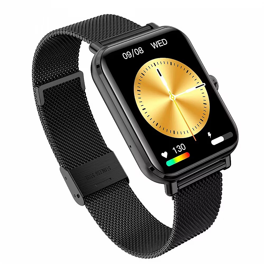 Functions - Wodoodporność IP67: Nie Wodoodporność IP66: Nie Wodoodporność IP65: Nie Przystosowany do pływania Dotykowy ekran Podświetlany ekran Bluetooth Kompatybilność z Android Kompatybilność z iOS Aplikacja z opcją GPS Powiadomienia dźwiękowe Powiadomienia wibracyjne Powiadomienia o wiadomościach SMS Powiadomienia o połączeniach Powiadomienia z aplikacji Odbieranie, odrzucanie, wykonywanie połączeń Klawiatura wybierania numerów Wykonywanie zdjęć telefonem Sterowanie odtwarzaniem muzyki z telefonu Funkcja szukania telefonu Funkcja szukania urządzenia Alarm rozładowania Pulsometr Ciśnieniomierz Pulsoksymetr Tryby sportowe Rodzaj trybów sportowych: 100 Trybów m.in.: Bieganie, Bieżnia, Trampolina, Joga, Koszykówka, Piłka nożna, Badminton, Maraton, Jazda na rolkach, Hula-hop, Golf, Baseball, Taniec, Pilates, Sztuki walki Krokomierz Monitor braku aktywności Przypomnienia o nawodnieniu Monitor snu Informacje pogodowe Wybudzenie ekranu ruchem ręki Odtworzenie pokonanej trasy Odtwarzacz muzyczny Stoper Minutnik Budzik Różne tarcze do wyboru Gumowy pasek Pasek wymienny Dedykowana aplikacja Smart-Time Pro