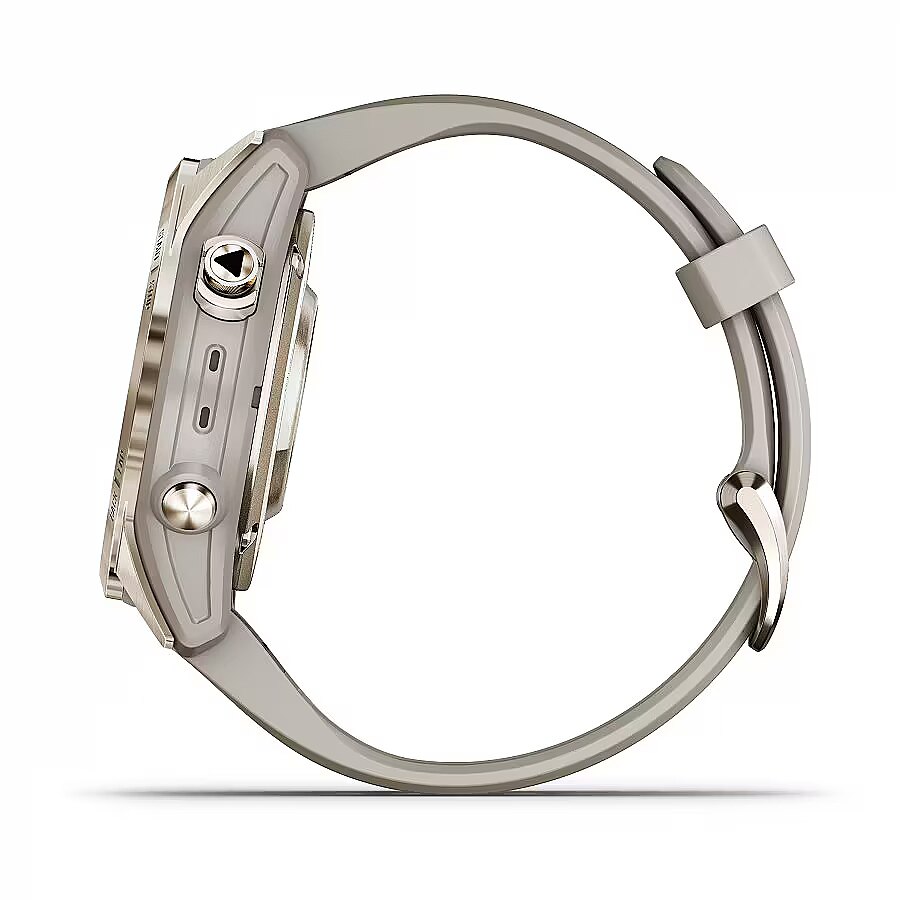 NameInWeb LV - Garmin 7s Pro Sapphire Solar, 42mm, zelta/bēša silikona siksniņa - Viedpulkstenis