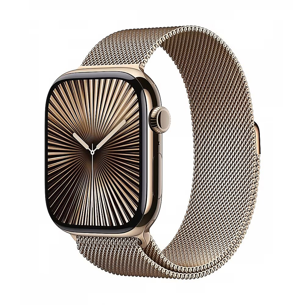 Apple Watch Series 10 GPS + Cellular, Titanium, Gold Milanese Band (M/L) - 46mm