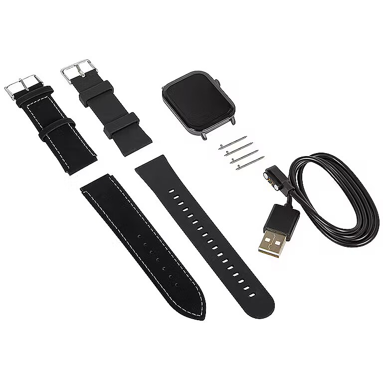 Accessories included - Smartwatch X18 2 x Pasek (czarny gumowy, czarny zamszowy) Kabel do ładowania Instrukcja obsługi w języku polskim i angielskim Opakowanie