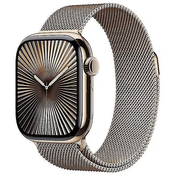 Name - Apple Watch Series 10 GPS + Cellular 42mm Gold Titanium Case | Gold Milanese Loop