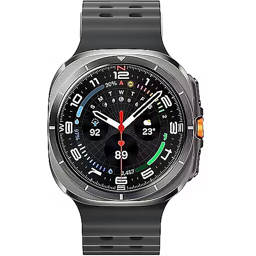 LongDesc - The toughest Galaxy Watch everImpact-ready cushion designTitanium shades. New in Blue.Galaxy Watch Ultra is available in Titanium Gray, Titanium Silver, Titanium White and now Titanium Blue. With performance bands to match, each finish makes a statement in the spirit of adventure.High-endurance battery powerOur longest-lasting Watch battery ever plus new power saving modes keep your health monitoring on-track for days even if you go off-grid.Bands for anything. One UI for everything.Gear up for every expedition with a range of band options for all terrains. With the new One UI 8 Watch, powered by an all-new processor, Galaxy Watch Ultra has you covered wherever you roam. At a glance in any lightWhen dark falls, Night mode keeps your info visible without straining your eyes. Perfect for preserving the beauty of the night sky when you're deep in the wild. Galaxy AIGalaxy AI iconKnow your score.Own your day.Start your day strong with a score that calculates your physical readiness based on yesterday's activity. Energy Score Galaxy AI analyzes key indicators of your overall condition and gives you a daily score so you can crush your goals. Power up cycling with Functional Threshold PowerWith a power meter paired with your Galaxy smartphone, Galaxy AI quickly estimates your Functional Threshold Power based on your own heart rate. Set your training intensity according to your FTP and hit your peak performance. Track heart stress while you sleepVascular Load monitoring shows you when there’s an increase in your stress level and the factors that affect it, like diet and sleep. Plus, it offers get targeted suggestions to improve and help protect against heart disease. Nourish and flourish with AGEs indexFor the first time on Galaxy Watch, see how your diet could affect your metabolic health with the new Advanced Glycation End-products (AGES) index. Monitor your meal choices, improve your lifestyle and maintain peak performance. In perfect sync with your phoneGalaxy Watch Ultra connects seamlessly with your Galaxy devices and comes LTE-enabled so you can leave your phone at home.Raise. Speak. Solved.Stay one step ahead of your day with a watch that helps navigate tasks and to-do lists. Need to send a text while on a run? Raise your wrist and speak your command and your Watch does the rest for you. Watch pairs with your Android smartphoneGalaxy Watch works seamlessly with Samsung phones and also works with other Android phones.Download the Galaxy Wearable and Samsung Health apps to get started using Galaxy Watch with your device.