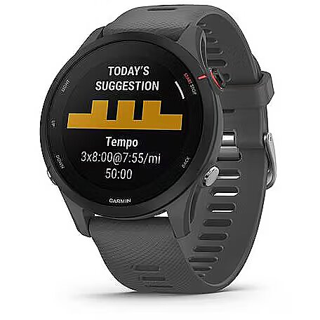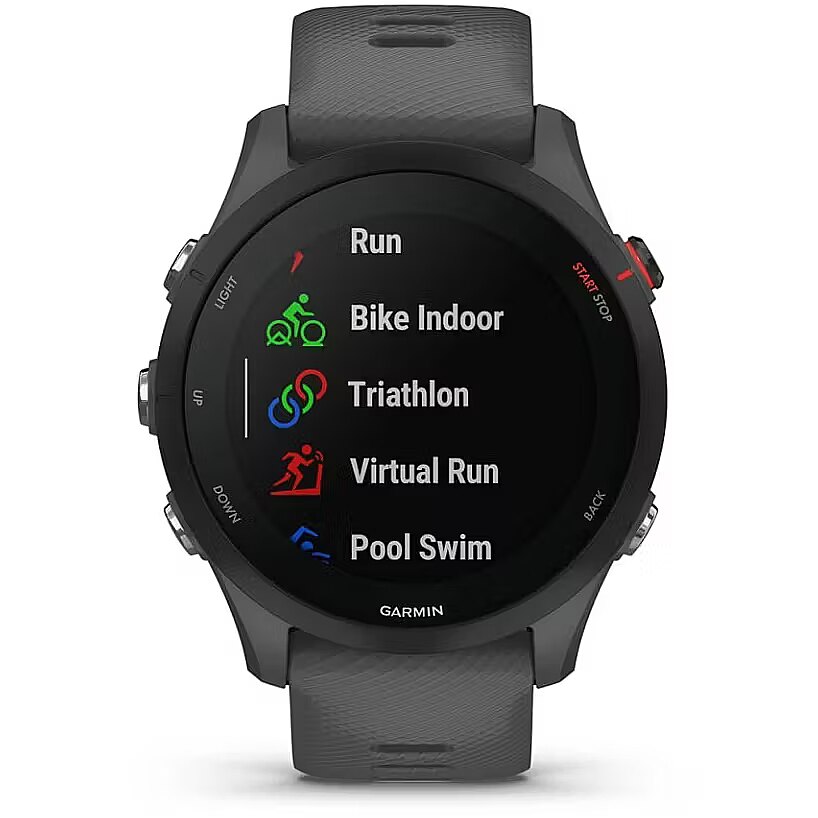 Description - Forerunner 255 RUN AT A HIGHER LEVEL You’re making strides. Now, let’s take the next step. Get the training and recovery insights you’ll need to notch your best time yet. Get an overview of your sleep, HRV status and daily workout with morning report. Charge less, train more with up to 14 days of battery life in smartwatch mode and up to 30 hours in GPS mode. Push your limits with a built-in triathlon feature and 30+ activity profiles. Plan your strategy with daily suggested workouts, course details and more on the race widget. Utilize a full suite of advanced metrics and training tools to reach your goals.