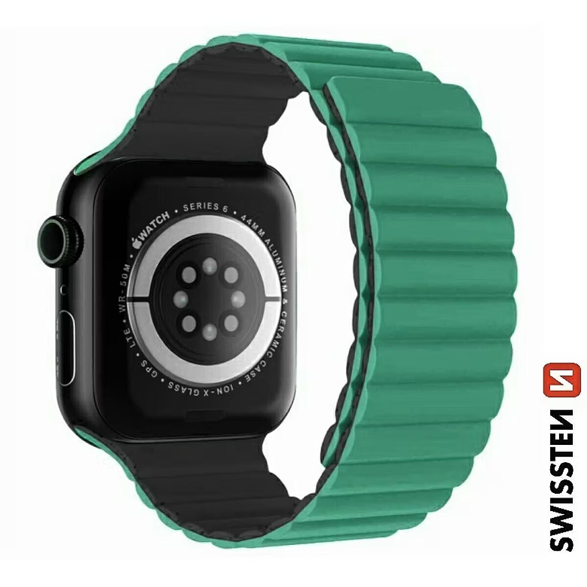 Swissten Silicone magnetic band, 42/44/45/49mm, Green - for Apple Watch 1/2/3/4/5/6/7/8/SE/SE2022