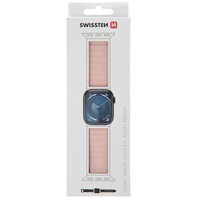 Swissten Silicone magnetic band, 42/44/45/49mm, Pink - for Apple Watch 1/2/3/4/5/6/7/8/SE/SE2022