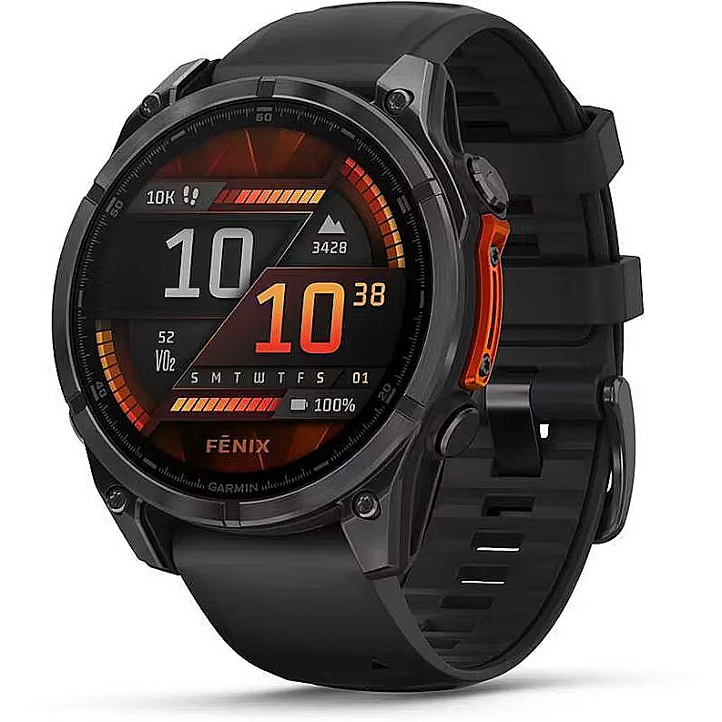 Description - fēnix® 8 – 51 mm, AMOLED Slate Gray with Black Silicone Band BE LIMITLESS For serious athletes and adventurers who want to push beyond their limits, this premium multisport GPS smartwatch is built to perform — with advanced strength training features, dive capability, an internal speaker and mic for voice features, a built-in LED flashlight and compact styling for smaller wrists. BRIGHT, CRISP AMOLED DISPLAY UP TO 10 DAYS OF BATTERY LIFE IN SMARTWATCH MODE SPEAKER AND MICROPHONE FOR VOICE MESSAGING1 AND CONTROL BRIGHT BUILT-IN LED FLASHLIGHT SPORT-SPECIFIC STRENGTH WORKOUTS 24/7 HEALTH AND WELLNESS FEATURES