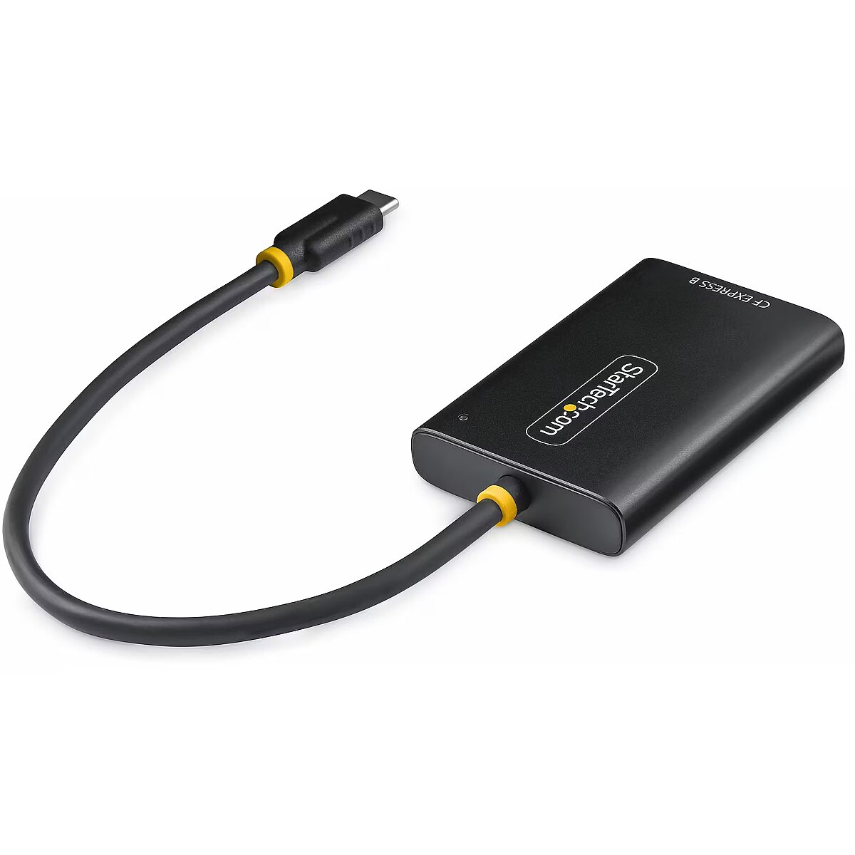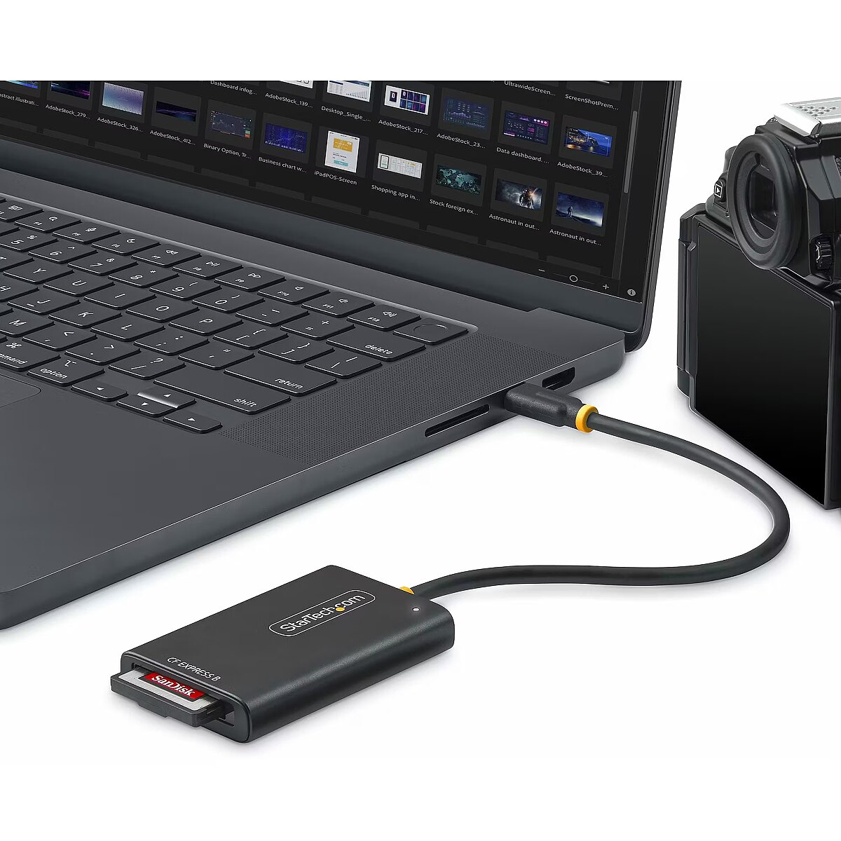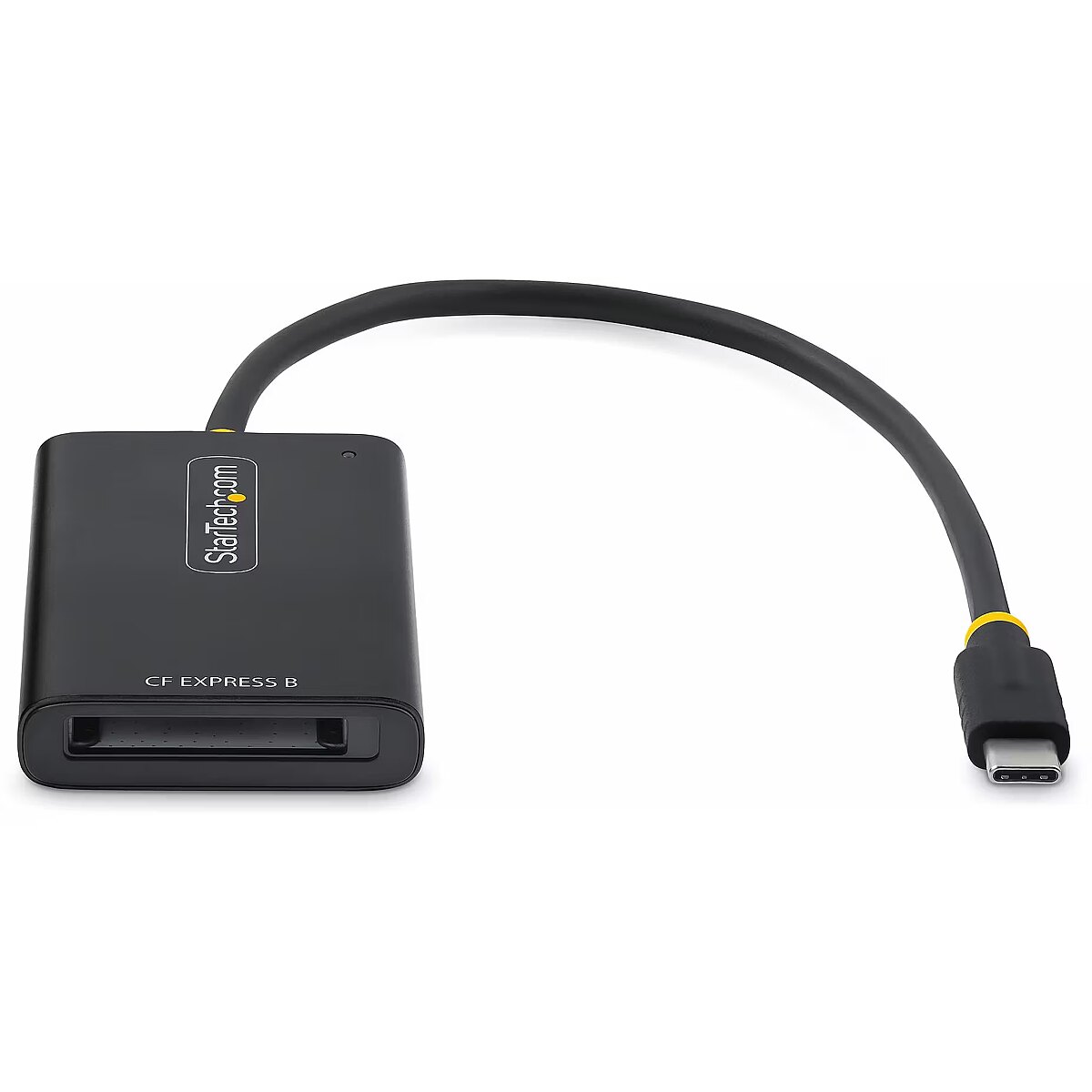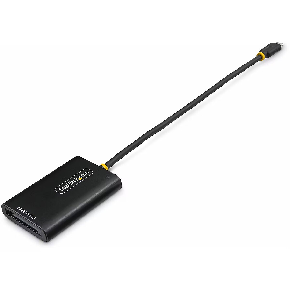 LongDesc - Instantly access digital content from a CFexpress Type B memory card on a USB-C enabled laptop, desktop, tablet, or other deviceThis CFexpress Type B card reader allows you to connect a CFexpress 2.0 Type B card to any USB-C-enabled laptop, desktop, tablet, or other device for high-speed data transfer of high-resolution images or video.Portable DesignThe card reader is bus-powered and features a lightweight aluminum body, making it ideal for traveling professionals such as photographers or videographers. Its compact form factor includes an attached 7.8inch (20cm) USB Type-C cable, eliminating the need to carry additional cables or adapters. A power/activity LED provides visual status updates.No Drivers or SoftwareThis universal card reader requires no drivers or software and is compatible with any operating system, including Windows, macOS, ChromeOS, and Linux. It works with USB-C-enabled laptops, desktops, tablets, MacBooks, and Chromebooks across all hardware platforms, including Intel, Nvidia, AMD, and Apple Silicon.USB 10Gbps Host ConnectionWith a USB Type-C 10Gbps connection, this card reader offers faster data transfer speeds compared to USB 5Gbps card readers, significantly reducing the transfer time for large, high-resolution images and videos. It is also backward compatible with USB 3.0 (5Gbps) and USB 2.0 (480Mbps).The StarTech.com Advantage