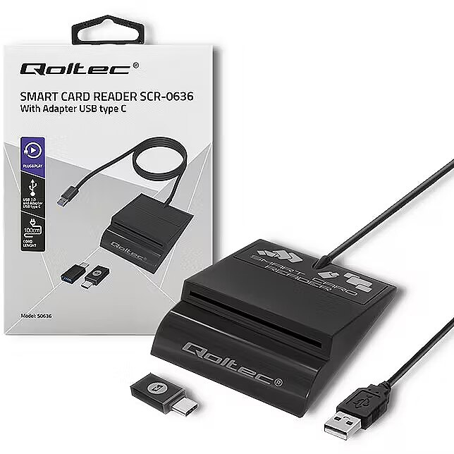 Qoltec Intelligenst smart ID card reader, USB type C