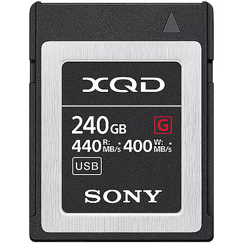 description_en - The Sony G Series 240 GB XQD memory card features write and read speeds of up to 400MB/s and 440MB/s respectively, providing dependable recording of 4K video while avoiding speed degradation. Sony's unique media technology is present within all G series XQD cards, allowing users to transfer their 4K videos and RAW images quickly and easily, and enhancing their workflow. Write speed of 400MB/s Write speed of 440MB/s Suitable for 4K video and RAW images 240 GB capacity Optimised flash memory