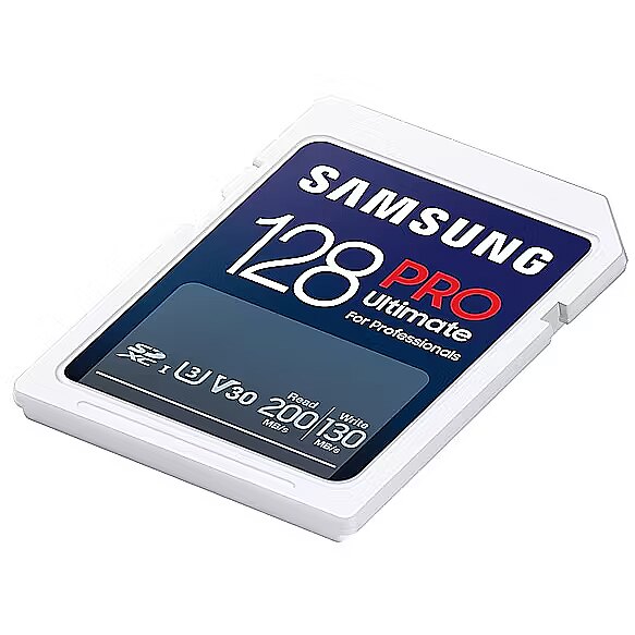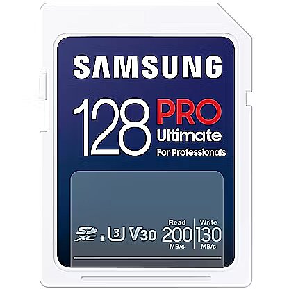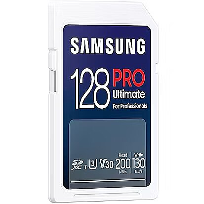 Description - SD Pro Ultimate Memory Card Optimized for creativity Incredible performance to optimize your creative workflow. The Samsung PRO Ultimate UHS-I SD Card delivers exceptional stability, high performance and reliability to meet the demands of professional photographers and content creators. The art of speed Sequential read and write speeds of up to 200 and 130 MB/s free up more time for creativity. Combined with U3 and V30 performance that enables continuous shooting and UHD 4K video recording, the PRO Ultimate card is the perfect choice for professionals demanding the highest quality. A place for all your inspirations Storage you can count on. With capacities ranging from 64GB to 512GB, the PRO Ultimate Card has plenty of room to capture and store your work, so you can see your project through to completion, no matter how big or ambitious it is. The power of versatility Unlock your creative possibilities with the Samsung PRO Ultimate SD card. Designed to work seamlessly with DSLR cameras, mirrorless cameras, digital cameras, as well as desktop and laptop computers, this versatile memory card lets you create content with confidence and ease. Solid reliability Confidence and peace of mind when you need it most. The PRO Ultimate SD card is backed by comprehensive 7-factor protection and a 10-year limited warranty to ensure uninterrupted performance under intensive use in extreme conditions. The world's #1 flash memory Top performance and reliability from the world's best-selling flash memory brand since 2003* * Source: OMDIA data for 2003-2022: market shares of NAND memory suppliers