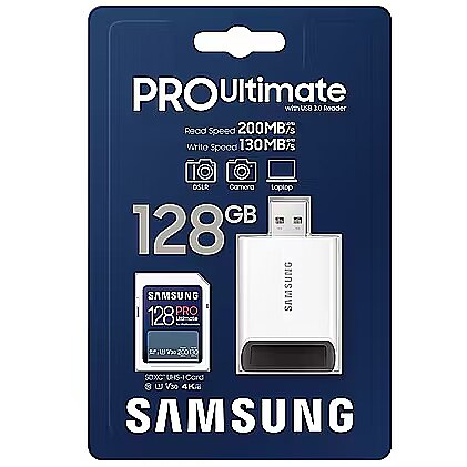 Samsung PRO Ultimate, SDXC, 128GB, UHS-I, U3, V30 +Reader
