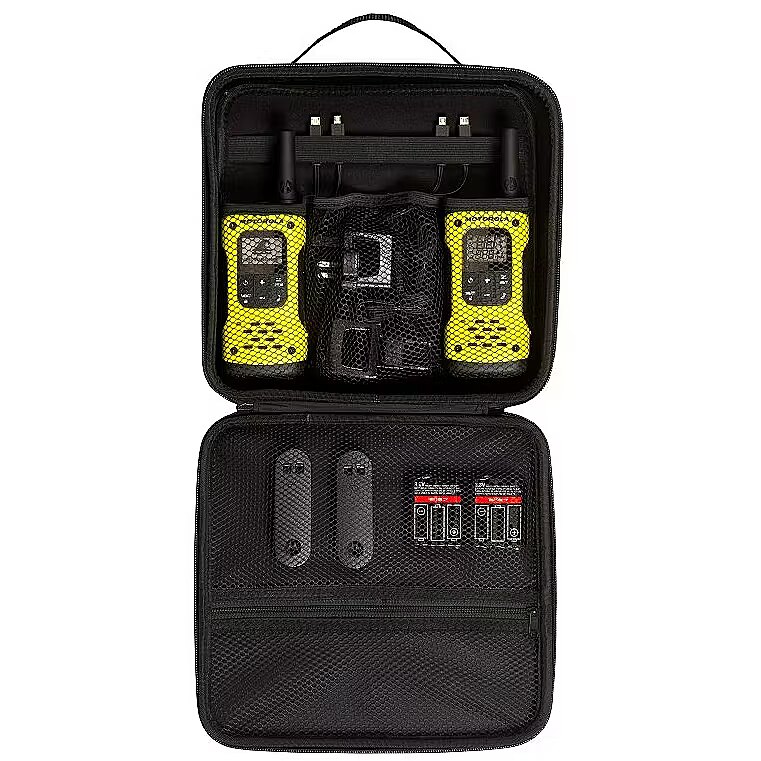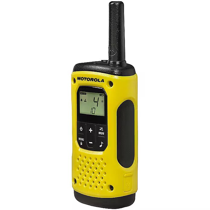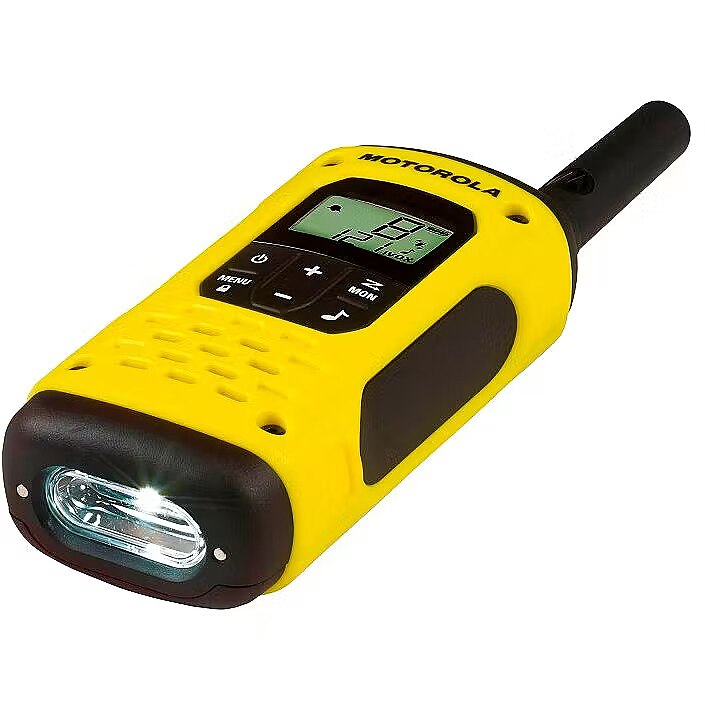 description_en - Talkabout Motorola T92 H2O Walkie-Talkies - Keeping You Connected On Your Wildest Adventures. Floating waterproof design, rugged construction and up to 10km range, the T92 H2O keeps you connected with family and friends. The integrated torch has bright white and red modes and will automatically activate on contact with water. Press the emergency alert button to activate a hands-free call and sound a loud warning tone on your radio to signal to others in your group that you need help. Supplied with rechargeable batteries, mains charger with 2 micro USB plugs, belt clips with built-in whistle and a hard carry case, the T92 H2O has everything you need to stay connected during your wildest adventures. Count on the T92 H2O two-way waterproof radio to keep you connected whether on land or at sea. With its IP67 rating, the T92 H2O withstands constant submersion of up to 1m for 30 minutes and repels the heaviest rain. Through meticulous engineering, the radio floats and is visible on the water surface. And with the water-activated flashlight, it's even easier to find. This radio includes an emergency alert feature, allowing you to enjoy your escape to the great outdoors with confidence that others can be informed of any dangers that may come your way. When the alert button is activated, the radio transmits an alert siren followed by transmission of spoken or incidental sounds. This allows you to send the signal to other radios and warn of impending danger. You can also use the whistle belt clip to let others know that you need help. In addition, there’s a built-in LED flashlight for peace-of-mind during evening adventures, unexpected emergencies and power outages. Select the white LED setting on the built-in flashlight to light your way during evening activities, unexpected emergencies or power outages. If your adventure takes place when it's dark, for example, if you’re stargazing or hunting at night, and you need to view maps, charts or other papers, switch to the red LED setting. This will allow you to read what you need while preserving your night vision. There are two ways to power your radio: use the included NiMH rechargeable batteries for up to 17 hours5 or use three AA batteries for up to 23 hours5,6. The T92 H2O is supplied with a mains charger with 2 micro USB plugs allowing you to recharge two radios at once. With 16 channels4 and 121 privacy codes, totalling almost 2000 combinations, it’s easy to find an available channel. With iVOX/VOX acting like a speakerphone and allowing hands-free communication, you can keep on moving without stopping to answer a call. Choose what your callers hear before you start speaking by selecting one of the 20 call tones. Use the vibrate alert feature where audible ring tones would be intrusive. Use the scanning feature to see which channels are currently in use. Low battery alert reminds you when batteries are running low. T92 H2O is PMR446-compliant, so you can communicate with other Talkabout PMR446 radios or even with radios from other suppliers by being on the same channel and privacy code. The keypad lock prevents your personalised settings from being inadvertently changed. Enjoy hours of uninterrupted outdoor activities by selecting a high capacity battery. (High capacity battery sold separately.) T92 H2O Packaging Includes: •2 radios •2 whistle belt clips •2 NiMH rechargeable batteries •1 mains charger with 2 micro USB plugs •1 carry case •1 user guide