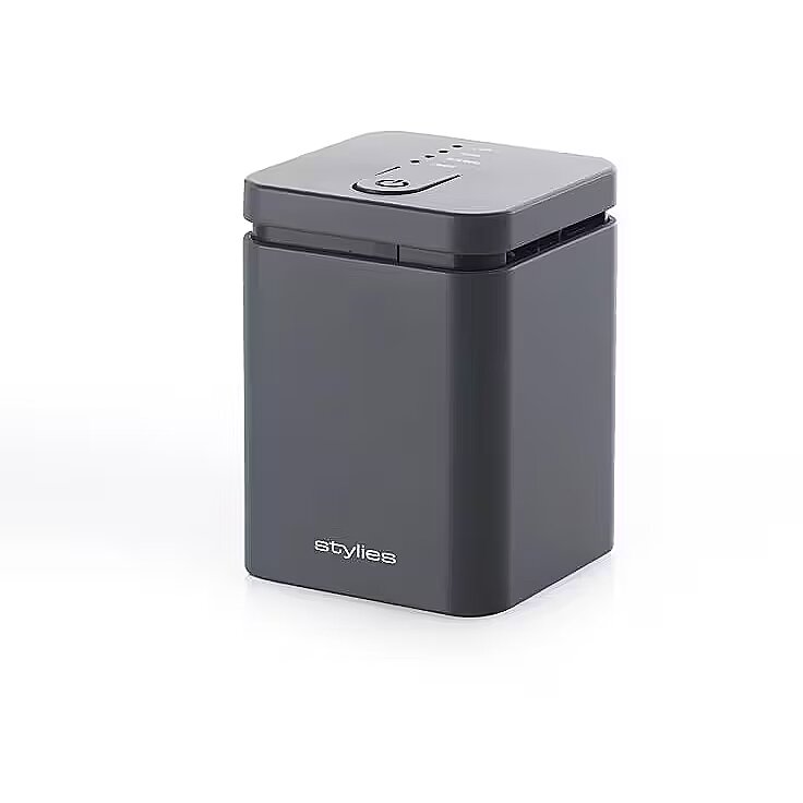 Description - Aroma diffuser Elara Variable power (2 speed levels) timer interval Aroma airflow channel Discover Elara, the powerful aroma diffuser for a wonderfully fragrant home With a maximum power of 1.3 watts, this innovative diffuser guarantees optimal fragrance distribution. Enjoy complete control with two speed settings, an interval mode, and a practical timer. It can be conveniently powered via USB, adapter, or batteries. Elara is compatible with essential oils and perfume and is especially recommended in combination with STYLIES Aroma Gels. Choose from three different colors: purple, anthracite, and white.