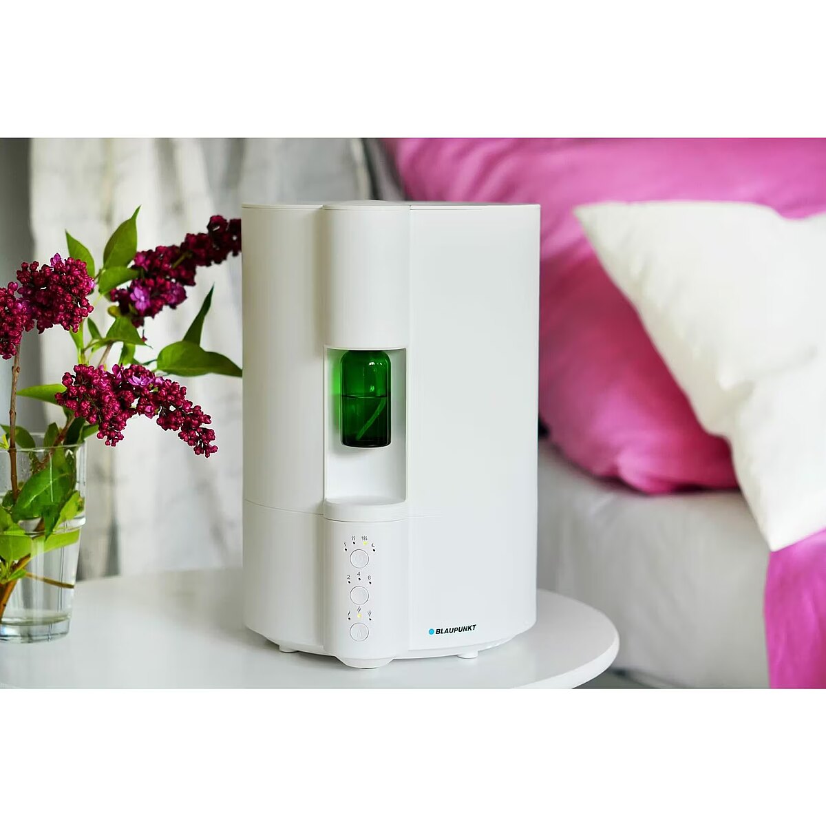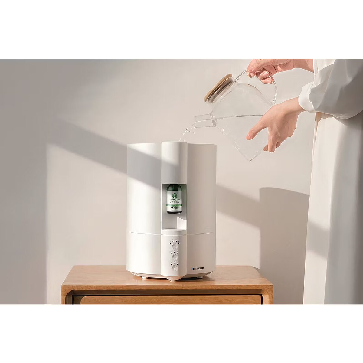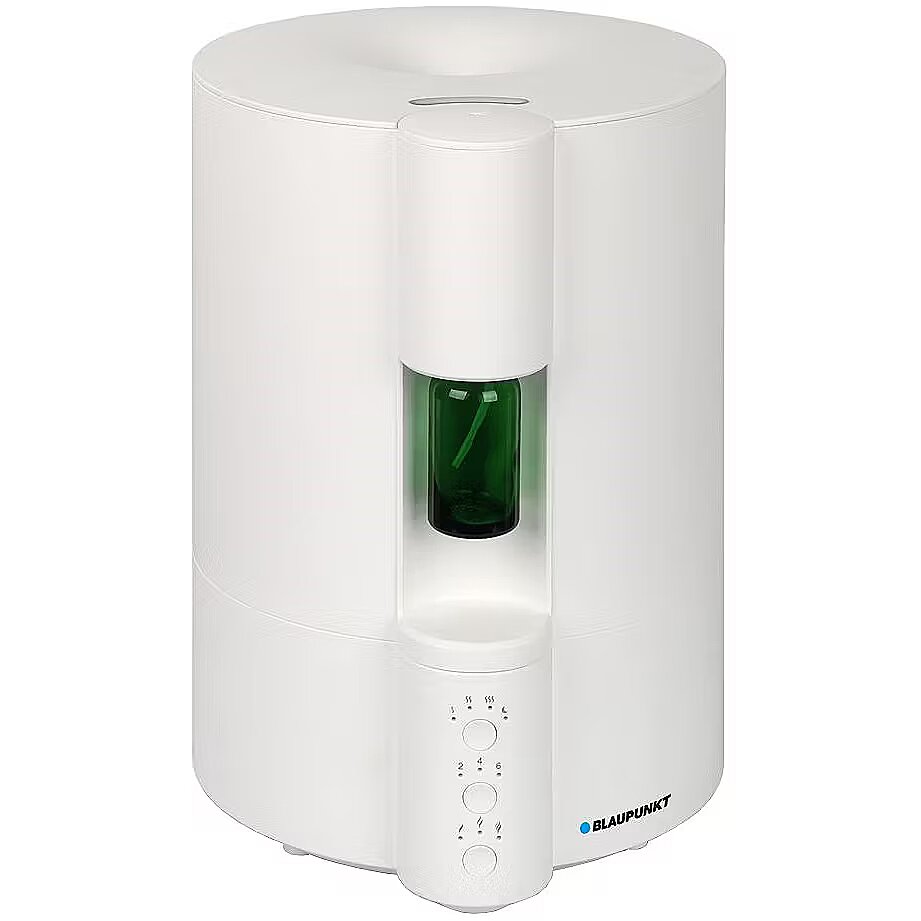 Description - Air humidifier with aroma diffuser AHA501 Many factors influence our health and well-being. One of them is the appropriate air humidity in the room where we work, rest or sleep. Chapped lips, irritated mucous membranes, headaches or sleep problems are symptoms indicating too low humidity. The high-class air humidifier AHA501 from Blaupunkt can help solve this problem, with a built-in fragrance diffuser, but it will not only ensure the appropriate level of humidity in your house or apartment. Thanks to the aroma diffuser, it will make you feel like you are undergoing aromatherapy, which will soothe your nerves and allow you to relax. The unique combination of a humidifier and an aromatizer will be beneficial not only to your health by removing unwanted hoarseness from the throat, but also to your senses. The system of electronic control of the intensity of humidification and fragrance release will easily allow you to create a healthy atmosphere in your home or office, full of pleasant scents. In the AHA501 humidifier, you can use essential oils for aromatherapy, which is not allowed in other models available on the market. Just screw a store-bought bottle of fragrance oil into the dedicated place in the humidifier and turn on the device to immediately soothe your senses with your favorite aroma. The aroma diffuser ensures optimal dispersion of essential oils in the form of cold mist without the need to activate the humidification function. The humidifier and aromatizer work independently of each other. The device is equipped with a timer allowing you to set the operating time of the humidifier (maximum 12 hours). Thanks to the intuitively designed control panel, you can easily and seamlessly program your device and decide when and for how long you will use the aromatherapy and humidification functions. The efficiency of the cold mist humidifier is 240 ml/h, which is sufficient to create optimal humidity conditions in the room you are staying in. The AHA501 model uses an extremely convenient system for filling the device with water. The tank is removable and can be filled from the top. So you don't have to worry that when refilling water you will splash the floor or furniture on which the humidifier is placed. The capacity of the water tank is 4 liters, which guarantees a long operating time of the device. The use of a water filter in the AHA501 model guarantees that limescale deposits will not accumulate on the floor and furniture in the immediate vicinity of the humidifier.