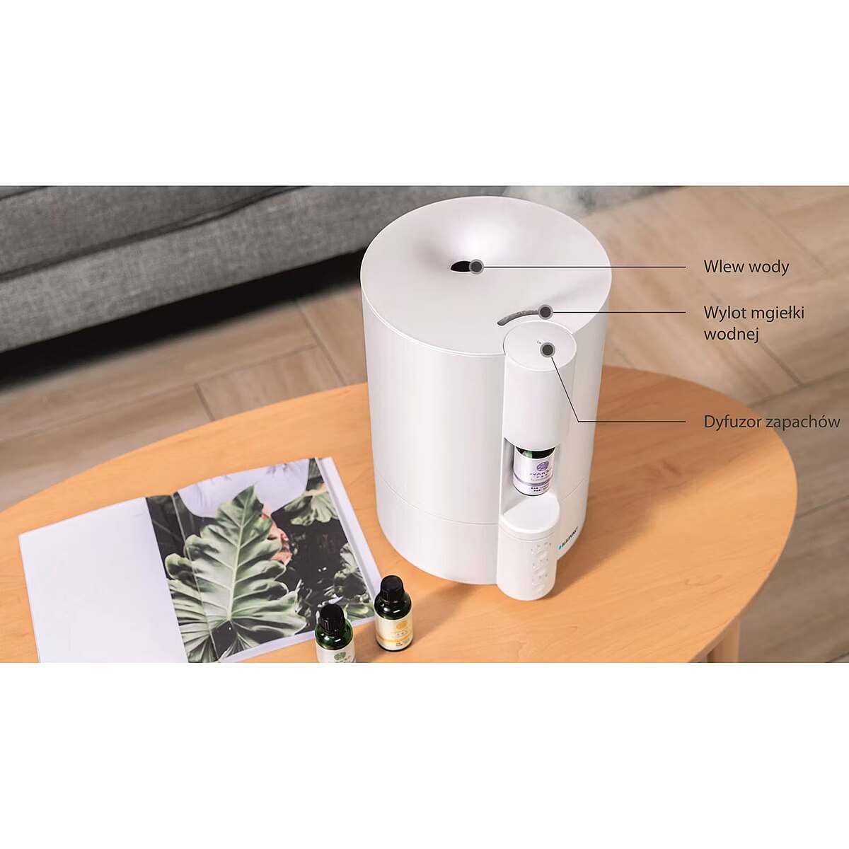 ShortDescription - Sposób nawilżania: Ultradźwiękowy, z dyfuzorem zapachów | Pojemność [ml]: 4000 | Głośność [dB]: 40 | Max. powierzchnia [m2]: 20
