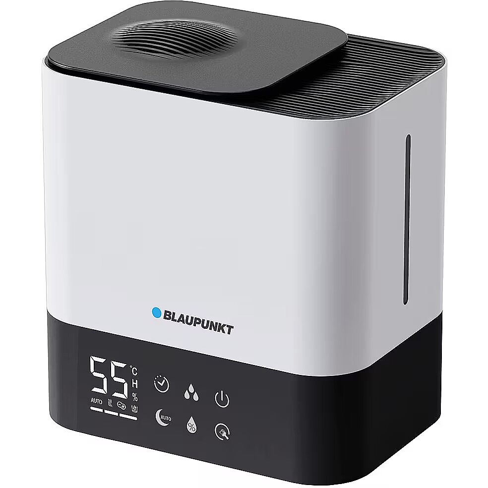 Description - AHM701 air humidifier A high-quality steam humidifier ensures that the air humidity in our homes is appropriate and maintained throughout the humidifier's operation, at an appropriate level that is friendly to human health and well-being. The optimal humidity in rooms should be between 50 and 60%. If it is lower, it leads to drying of the skin and mucous membranes, reducing the feeling of comfort. If it is higher, it may contribute to the development of molds and fungi that are dangerous to us. The AHM701 steam humidifier from Blaupunkt increases the humidity level by heating the water, causing the formation of water vapor, which is then released outside the device. Because the water leaving the device is already in gaseous form, the water mist is invisible. For this reason, water deposits do not float in the air through droplets and do not fall around the device. An additional advantage of steam humidifiers is the lack of cooling effect in the room. Water evaporates when heated by a humidifier, unlike water mist, which absorbs heat from the surroundings. This model allows you to constantly maintain optimal air humidity in the range of 40 to 80%, depending on the user's individual preferences, and thanks to the built-in timer, you can set the time (maximum 10 hours) after which the device will turn off automatically. The device has an excellent humidification efficiency of 500 ml/h using a maximum power of 400 W. In addition to displaying the current air humidity, the humidifier is equipped with a thermometer function that informs the user about the temperature in the room. The AHM701 model is additionally equipped with an aromatherapy and ionization function, which creates a discreet, delicate and pleasant scent in the room. The comfort of use is complemented by the ability to fill the 5-liter tank from the top and a convenient and easy way to clean it. A clear, large LED display with a touch panel that turns off along with the lamp in night mode, as well as the remote control included in the set, make this device very functional and easy to use. Humidifiers of this type are especially recommended for rooms with small children and people struggling with any respiratory diseases, because the high temperature of heating the water successfully removes most microorganisms and bacteria from it.