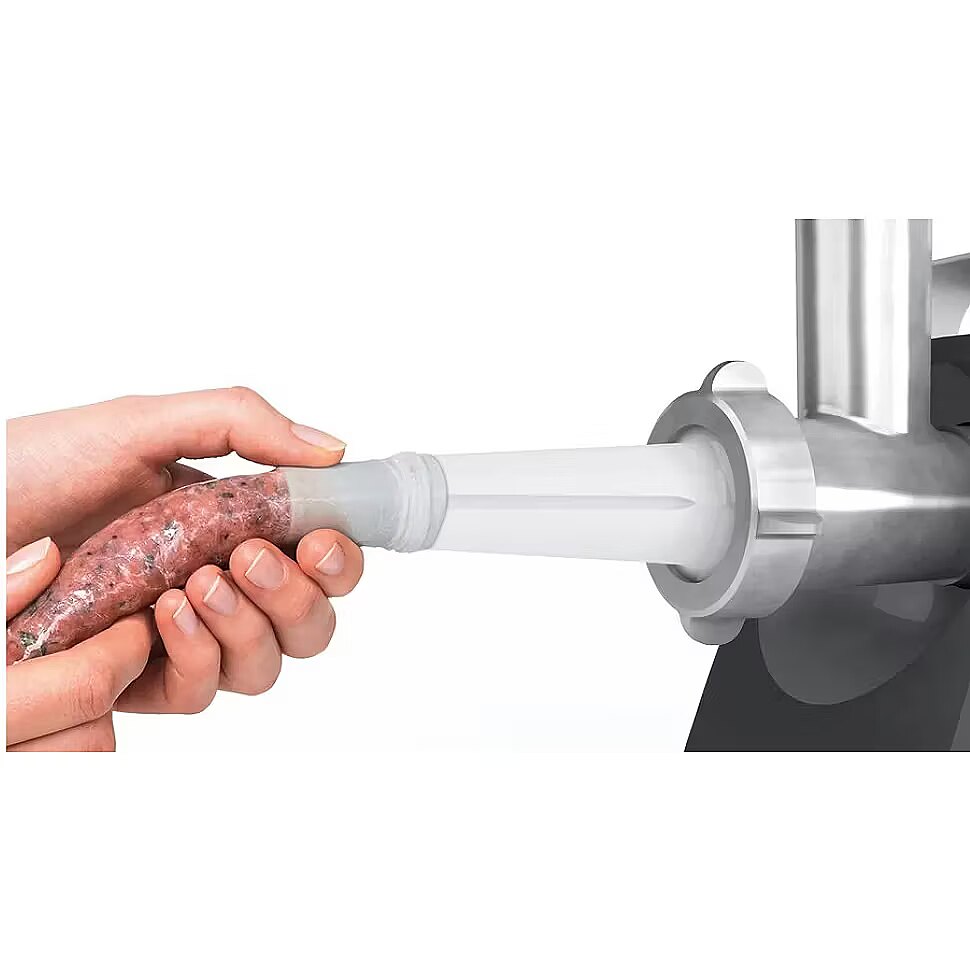 Accessories included - Lejek Popychacz Przystawka do robienia kielbasy Zestaw sitek do maszynki do miesa 2,7 mm Zestaw sitek do maszynki do miesa 4 mm Zestaw sitek do maszynki do miesa 8 mm
