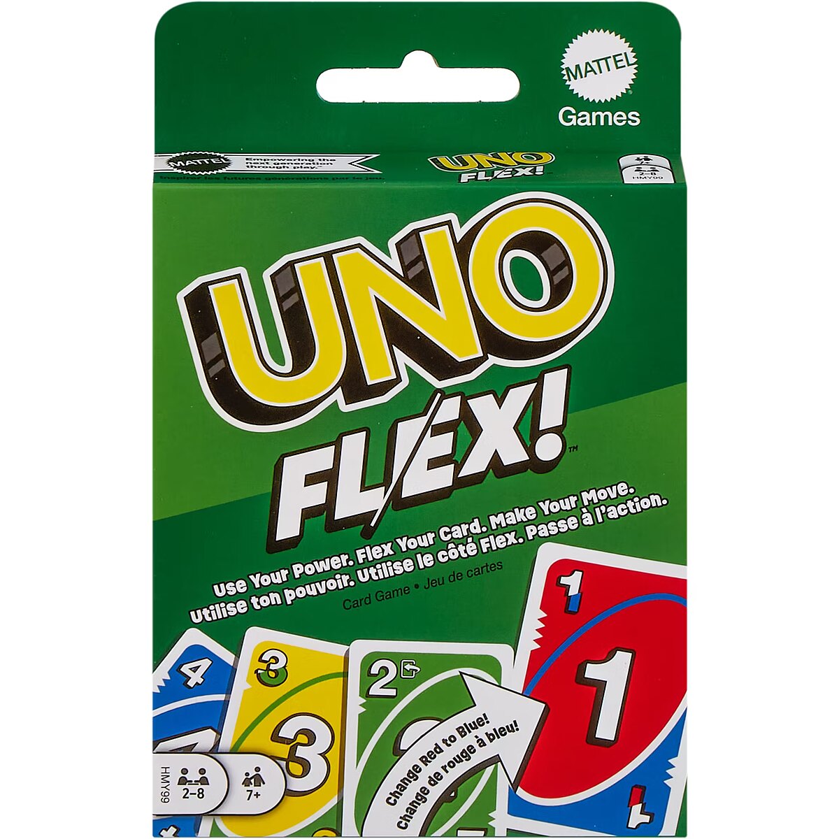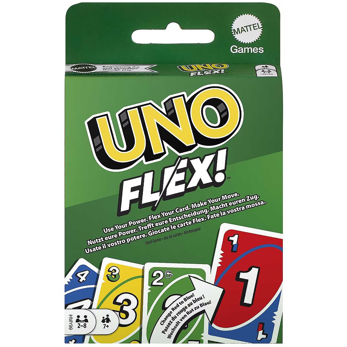 LongDesc - UNO Flex Card Game is based on the UNO Card Game players know and love, but with a flexible attitude. Special cards let players change a card colour to make a match -- a Red 4 can become a Green 4 in one flex. Power Cards and Flex Action Cards add even more bends to the game! Perfect for families, parties and game nights, it makes a great gift for UNO fans and card game lovers ages 7 years and up. Colours and decorations may vary.