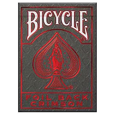 LongDesc - Bicycle MetalLuxe® Crimson Rider Back with NEW premium package. These opulent Crimson decks feature our instantly recognizable design – this time with rich foil backs for exceptional brilliance. The special stamped application of metal foil is coated with our proprietary coating before our Air-Cushion® finish is applied. The result is a luxurious look with the performance and durability only available from Bicycle® Playing Cards. Use these for everyday play, cardistry, magic or just to show off! Makes a great gift for card lovers. Printed in the USA.