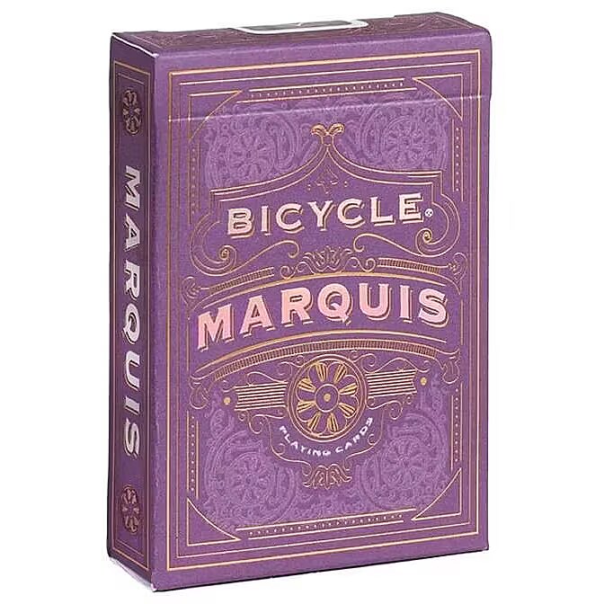 LongSummaryDescription - Bicycle Marquis. Number of cards: 56 pc(s), Product colour: Purple, Number of decks: 1 deck(s). Pallet gross weight: 633 kg, Products per shipping (inner) case: 6 pc(s), Shipping (inner) case length: 28.3 cm. Weight: 100 g, Width: 65 mm, Depth: 92 mm. Manufacturer: U. S. Playing Card Co.