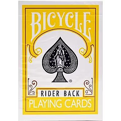 Description - The cards are known for their high quality, recommended and used by many illusionists and manipulators. Their popularity has ensured their reputation for making every trick easier and they will last much longer than a normal pack of cards. Ideal for both learning and presenting tricks. With a tradition dating back to 1885 and an established reputation, Bicycle cards are the most recognisable and reputable cards in the world! Each deck is made from its own unique paper and coated with a specialised material. As a result, customers have trusted Bicycle products for many years. An exclusive feature of Bicycle cards is the Air Cushion finish. This secret formula makes Bicycle cards last longer, are easier to shuffle and deal which makes card play much more enjoyable! A new colour, even more beautiful! You can use these cards for colour changing effects, but you can also use them as a regular deck. Both the reverse of the card and the pack in yellow. Poker size, air cushion finish, Bicycle quality. The deck has been enhanced with 1 joker and 3 gaff cards: the first is a blank face, the second a double back, the third a doubl back yellow/green.