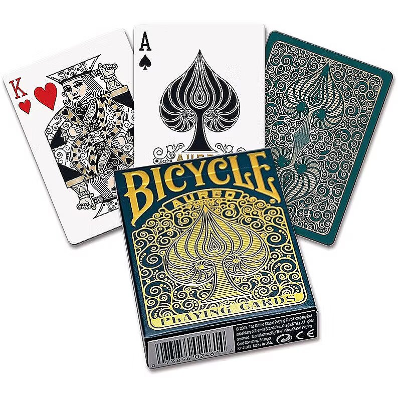 Description - This phenomenally beautiful deck consists of 54 cards made with the Air Cushion technique, which increases the durability and quality of construction. Bicycle: Aureo will prove ideal for illusionists and magicians, but is also perfect for classic games and fortune telling. Bicycle - Made in USA - more than 130 years of tradition!