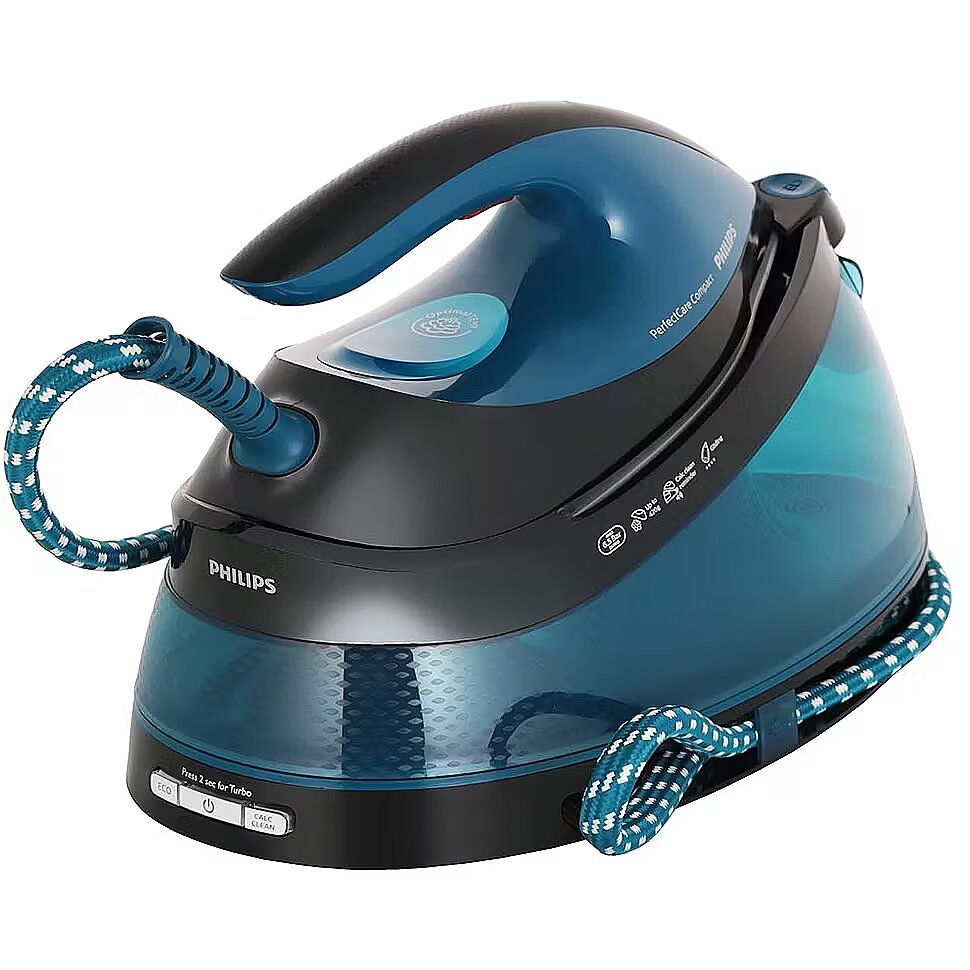 description_en - The Philips PerfectCare Compact GC7846/80 steam generator iron offers powerful, continuous steam for faster and easier ironing. Its OptimalTEMP technology ensures no burns on any ironable fabric, while the 2400 W power and 120 g/min continuous steam provide quick wrinkle removal. With a 1.5 L detachable water tank and up to 6.5 bar pressure, this model combines strong performance with lightweight handling. The SteamGlide Plus soleplate ensures smooth gliding on all fabrics, and the Smart Calc Clean system simplifies maintenance.