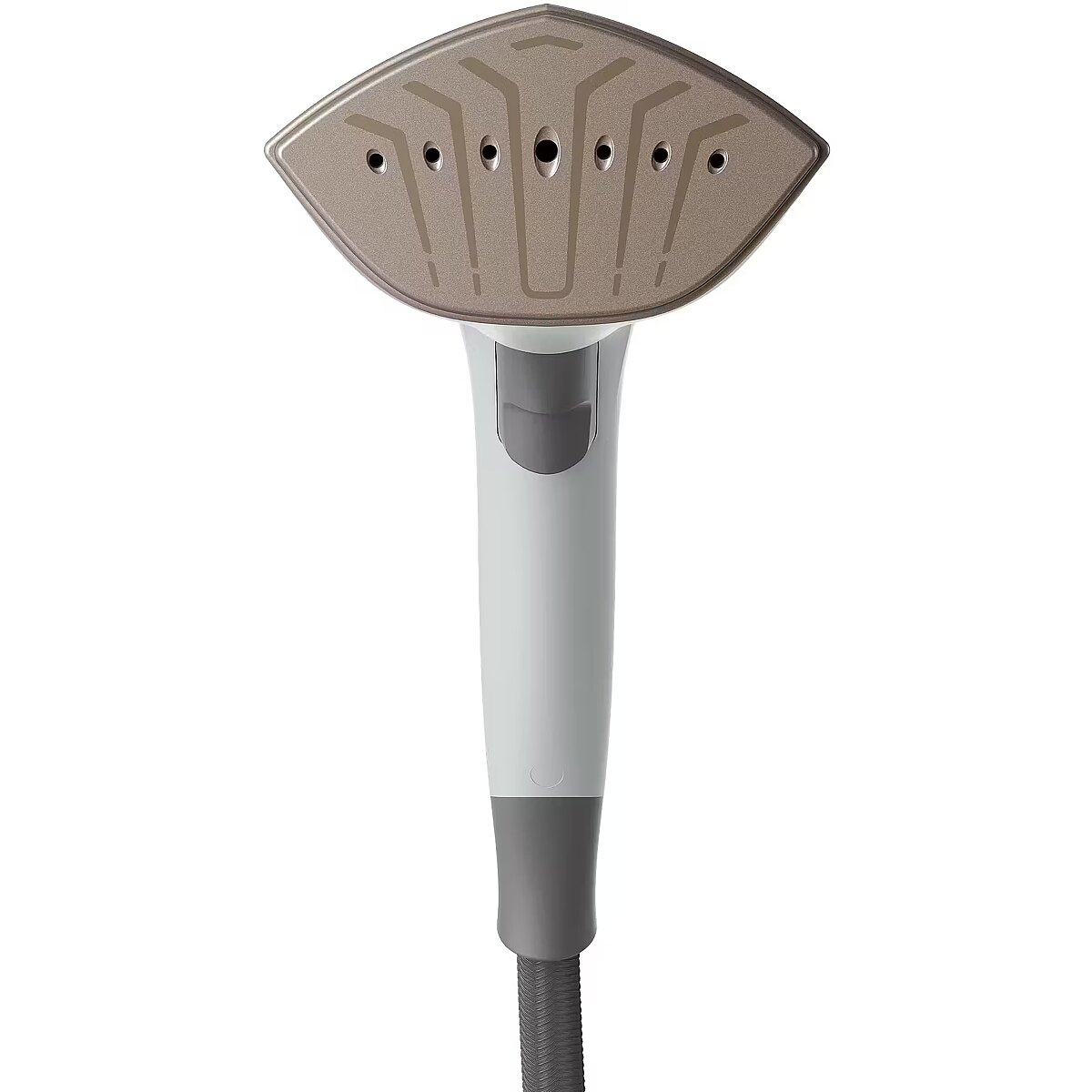 The steam plate on the device features triple precision tips, designed to tackle hard-to-reach areas like collars and in-between buttons with ease. Fold-away top hook