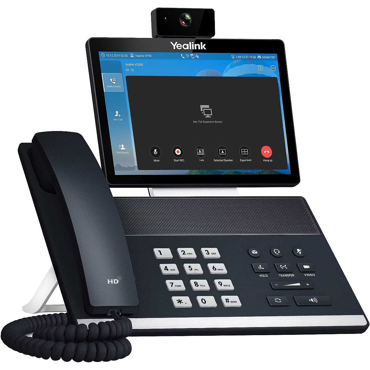 LongDesc - The VP59 Android-based phone is designed as an executive desk phone and also can be applied for huddlerooms. With an 8-inch adjustable multi-point touch screen and easy Teams menu navigation, all of these makecollaboration easier than ever. Presenting a standalone voice solution and an unparalleled audio clarity, theVP59 is armed with Yealink’s Optima HD Voice technology and Yealink Noise Proof technology. The VP59provides the added flexibility for executives and professionals with its Bluetooth/Wi-Fi connectivity and theability of USB headset connection. Furthermore, it will be armed with wireless microphone (available in H2,2019), HDMI output and detachable camera, making it easy to be deployed in the huddle room.Easy CollaborationFully compatible with Office 365, the VP59 offers a rich and talented ecosystem foryour team. The 8-inch adjustable multi-point screen and the Teams-tailored userinterface provide a rich visual presentation and easy menu navigation. The built-inBluetooth 4.2 and dual band Wi-Fi boast unparalleled functionality and expansibility. With HDMI output features, users are able to sync the screen to a TV or monitor. The all-in-one product design integrates a codec, a camera and a microphone.Setup and deployment are possible with even a single line (Internet cable orpower cable).HD AudioYealink Noise Proof technology effectively eliminates background noises. You can connect VP59 to wireless microphones to cover an open work space (available in H2, 2019).Flexible Video ExperienceThe camera can be extended by a 10-foot (3-meter) USB cable and mounted on the top of a monitor with a bracket, bringing flexibility to camera location and meeting view.