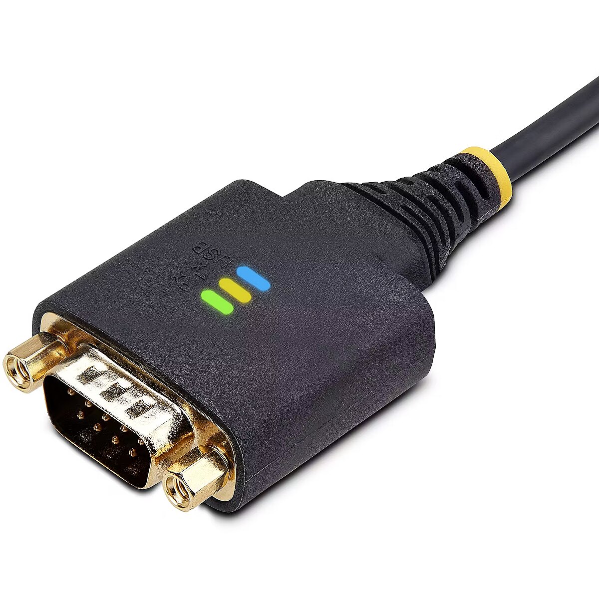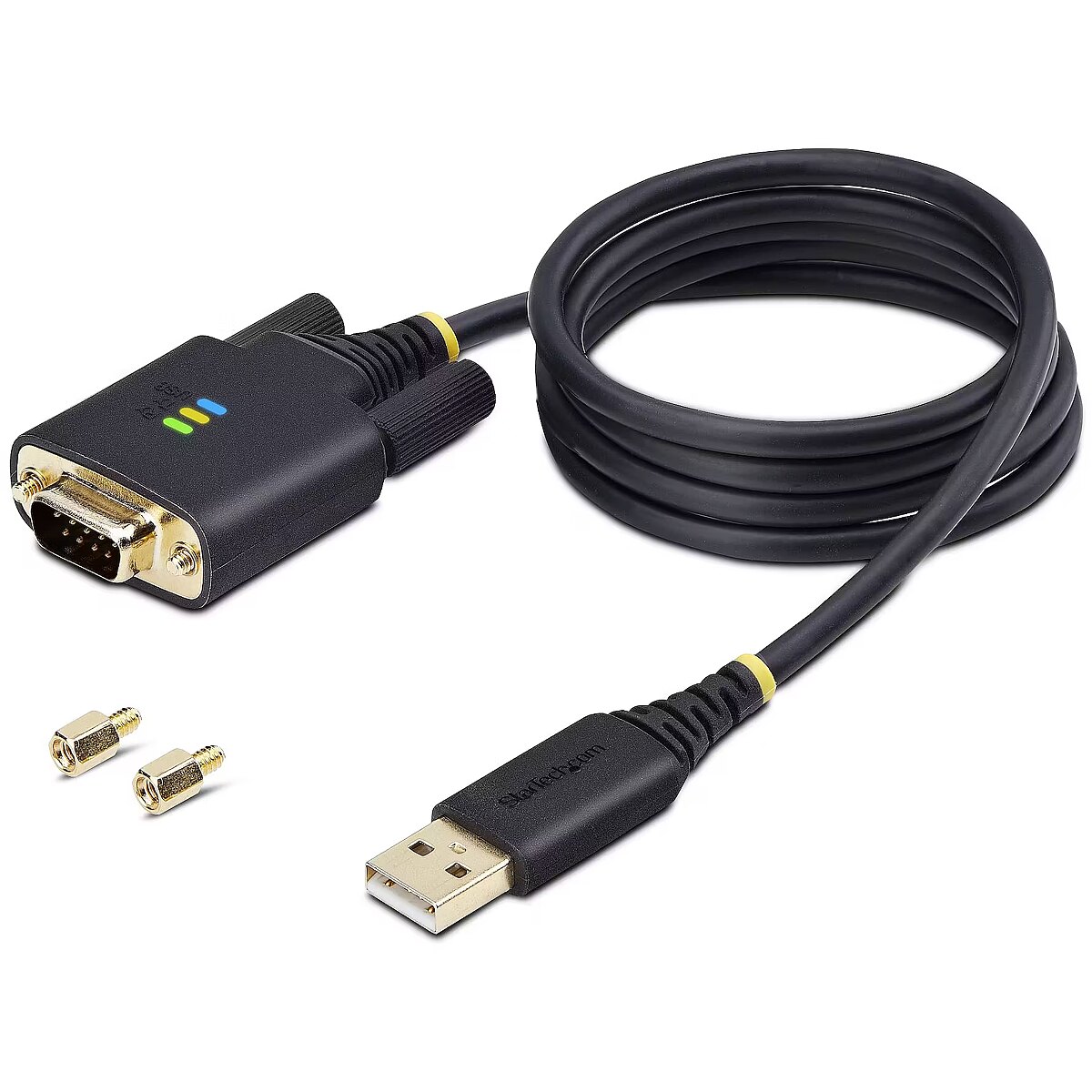 LongDesc - Add an RS232 serial port to a laptop or desktop, using an available USB-A portAdd RS-232 serial communication support to USB-A enabled Data Terminal Equipment (DTE - e.g., desktop or laptop), using this 3.3ft (1m) straight through USB to Serial Adapter Cable.Serial Port ExpansionThe USB Serial Adapter adds an RS-232 serial DB/DE-9 (male) connector to a desktop or laptop via a USB Type-A port. Secure the adapter to a serial device, using pre-installed and removable slotted D-Sub thumbscrews or install the included DB-9 Nuts for compatibility with other serial peripheral devices or cables.LED IndicatorsData transmission and reception LED indicators on the adapter provide real-time monitoring of port activity. The USB LED indicates when the adapter has successfully enumerated on the desktop or laptop. All the LEDs aid with diagnostics and troubleshooting.Seamless ConnectivityThe adapter is compatible with Windows, macOS, ChromeOS, and Linux. Drivers automatically install to Windows 7 and newer versions, macOS 10.15 and above, and Linux. The USB to RS-232 adapter features COM retention, which automatically reassigns the COM port value if the cable is disconnected and reconnected, or if the system is rebooted.Built To LastThe rugged TPE construction and Level-4 ESD protection (15kV air and 8kV contact) enhance the reliability and longevity of the USB to Serial Adapter. Copper shielding minimizes Electromagnetic and Radio Frequency Interference (EMI and RFI). Gold-plated connectors enhance signal conductivity.The StarTech.com Advantage