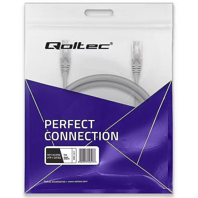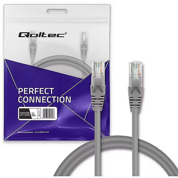 Qoltec's UTP CAT5e cable is a 5m unshielded cable designed to support data transfer speeds of up to 1 Gb/s on Ethernet networks. Suitable for high-speed data transfer applications such as file transfer, video streaming, video conferencing requiring high network bandwidth. Particularly used in data communication networks, computer networks, power transmission, data transmission and monitoring systems.