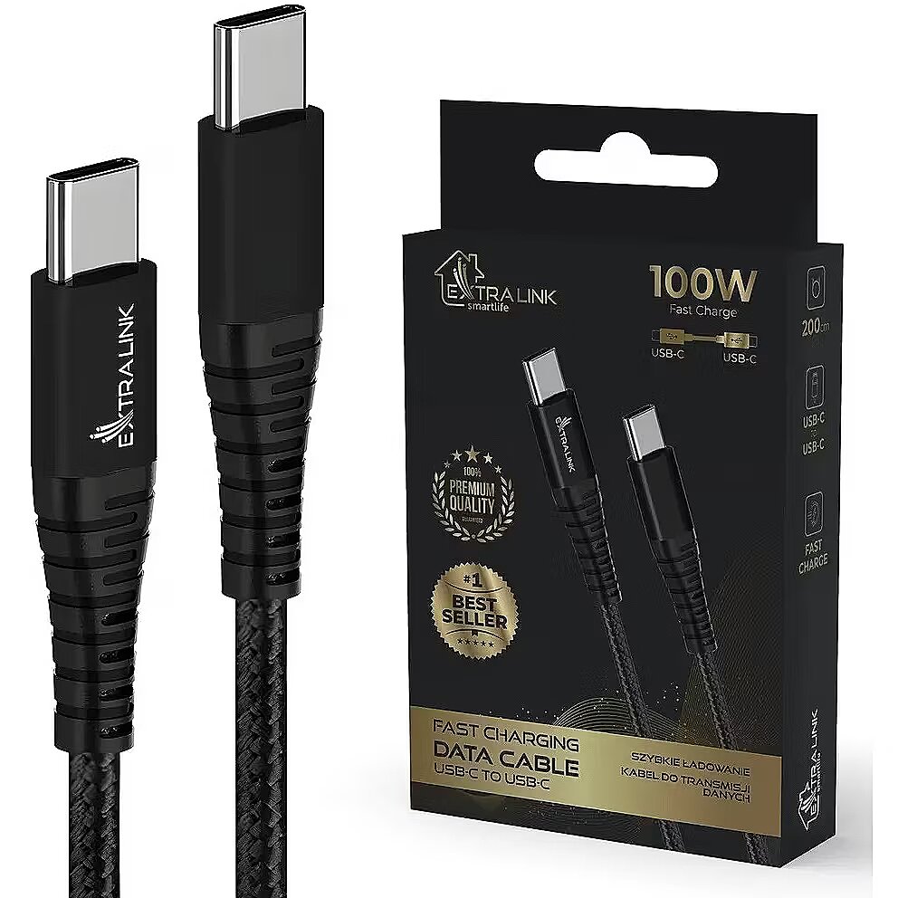 Name - Extralink Smart Life Braided 100W USB Type-C to Type-C 480 Mbps, 20V 5A 2m czarny